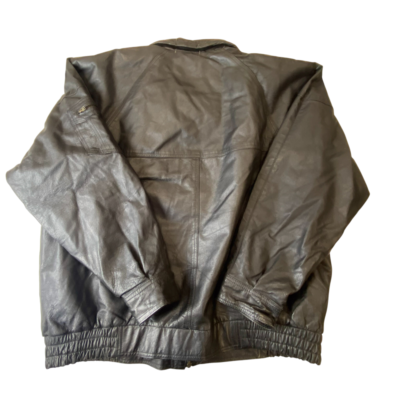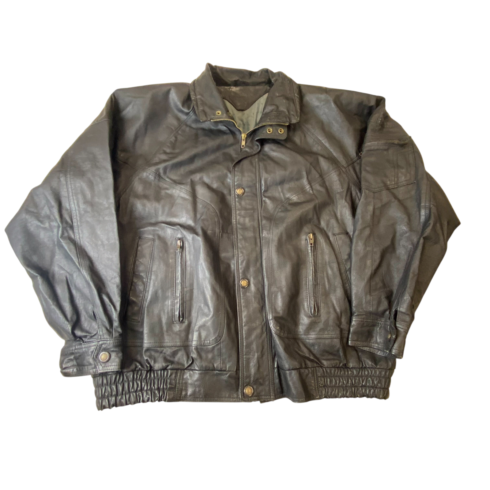 Mens Real Leather Jacket XL Black Lined Snap Button Inside Zip Elasticated Hem