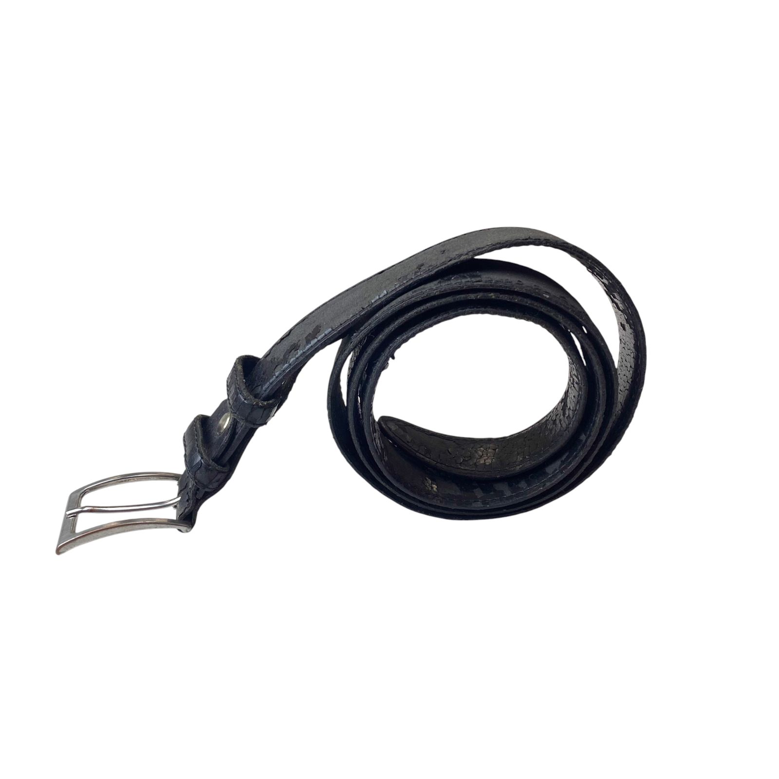 Mens Waist Belt Black Leather Double Keepers Silver Pin Buckle Size 44 in