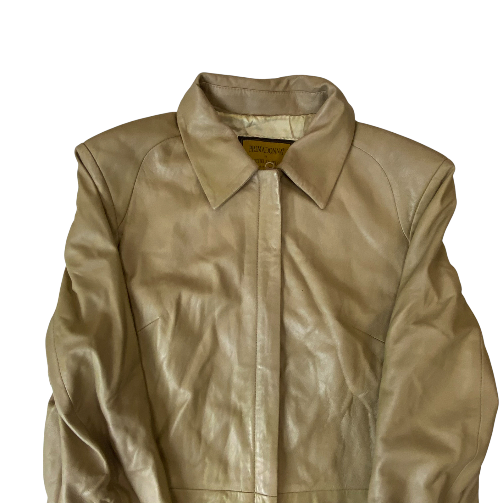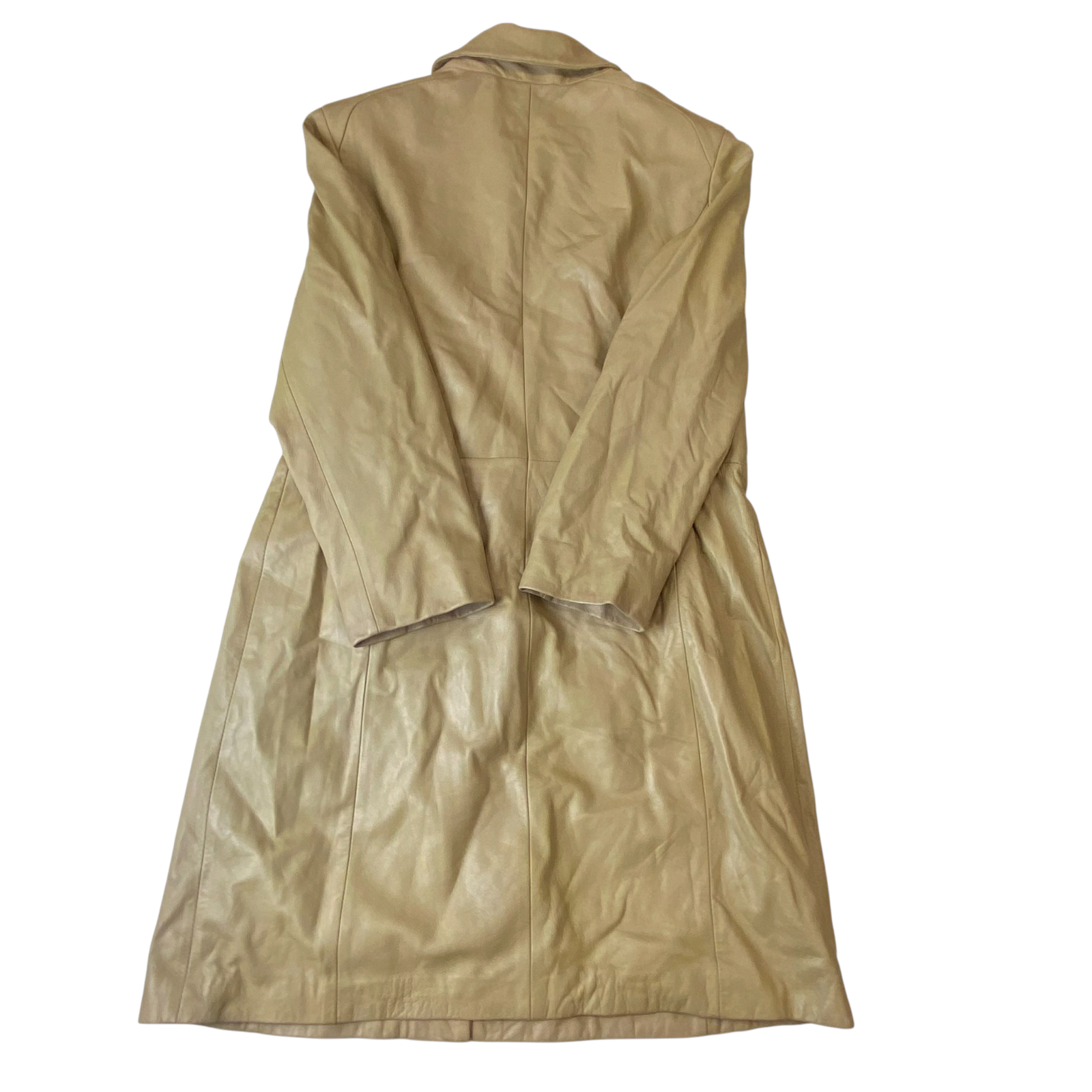 Michelangelo Leather Long Coat Womens Medium Beige Lined Collared Full Zipper