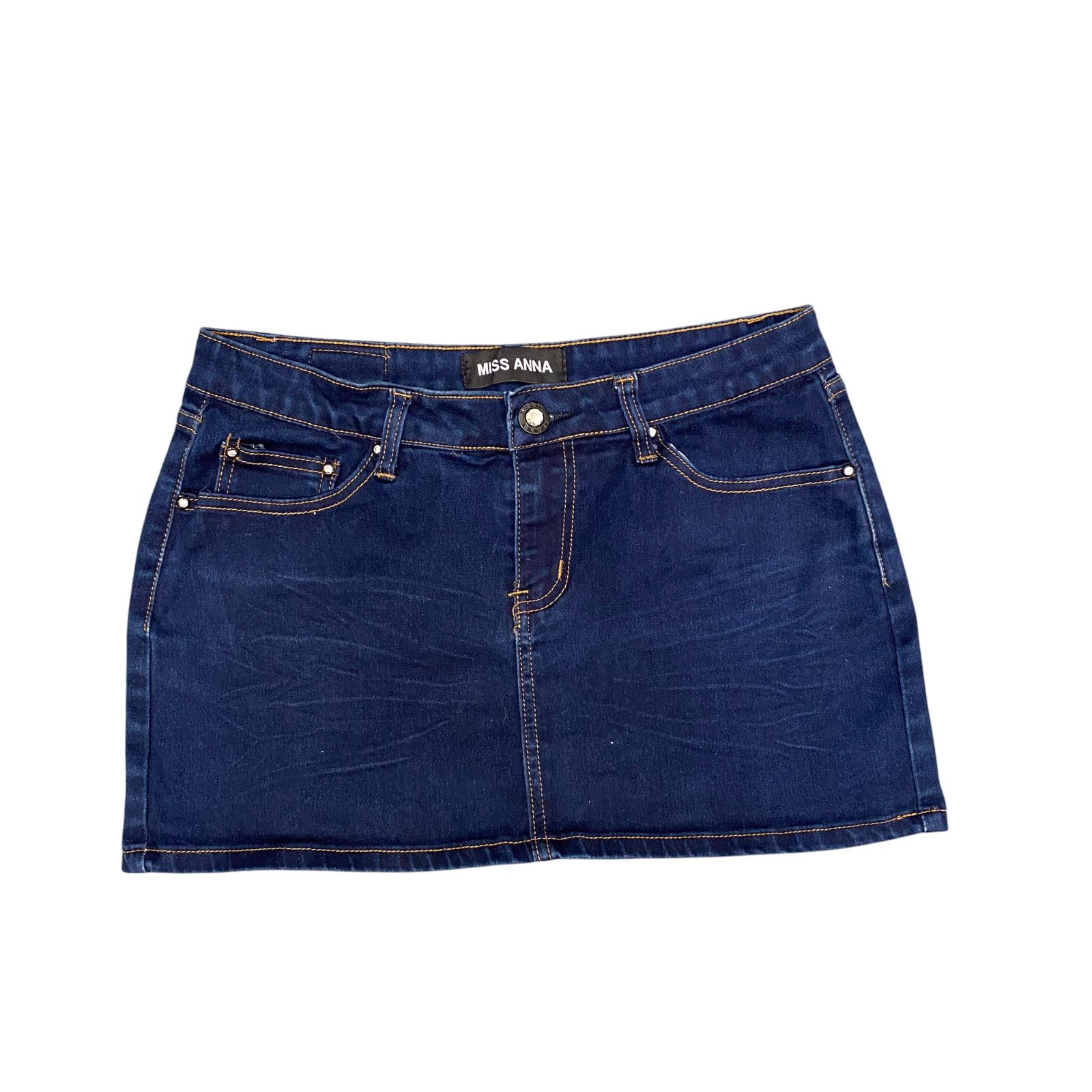 Miss Anna Jeans Skirt Womens L Blue Denim Casual 5 Pocket Design Crystal Button