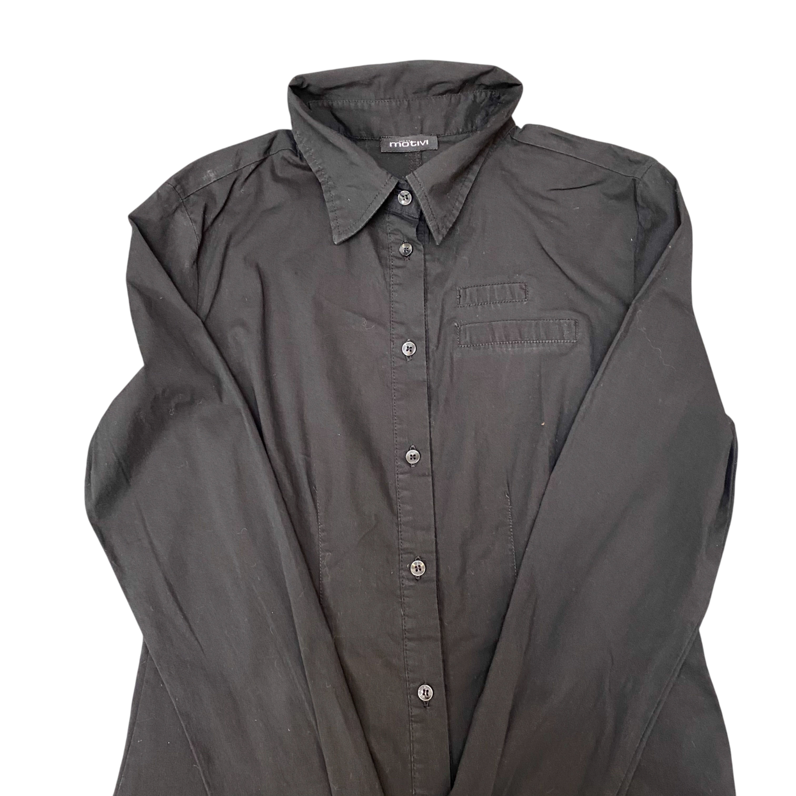 Motivi Shirt Top Womens S Black Solid Long Sleeve Chest Pocket Button Down