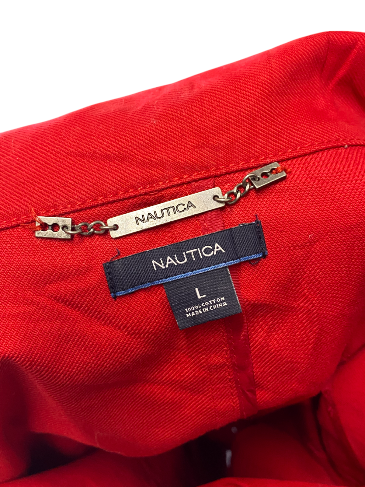 Nautica Jacket Womens Large Red Lightweight Long Sleeve Hooded Toggle Front