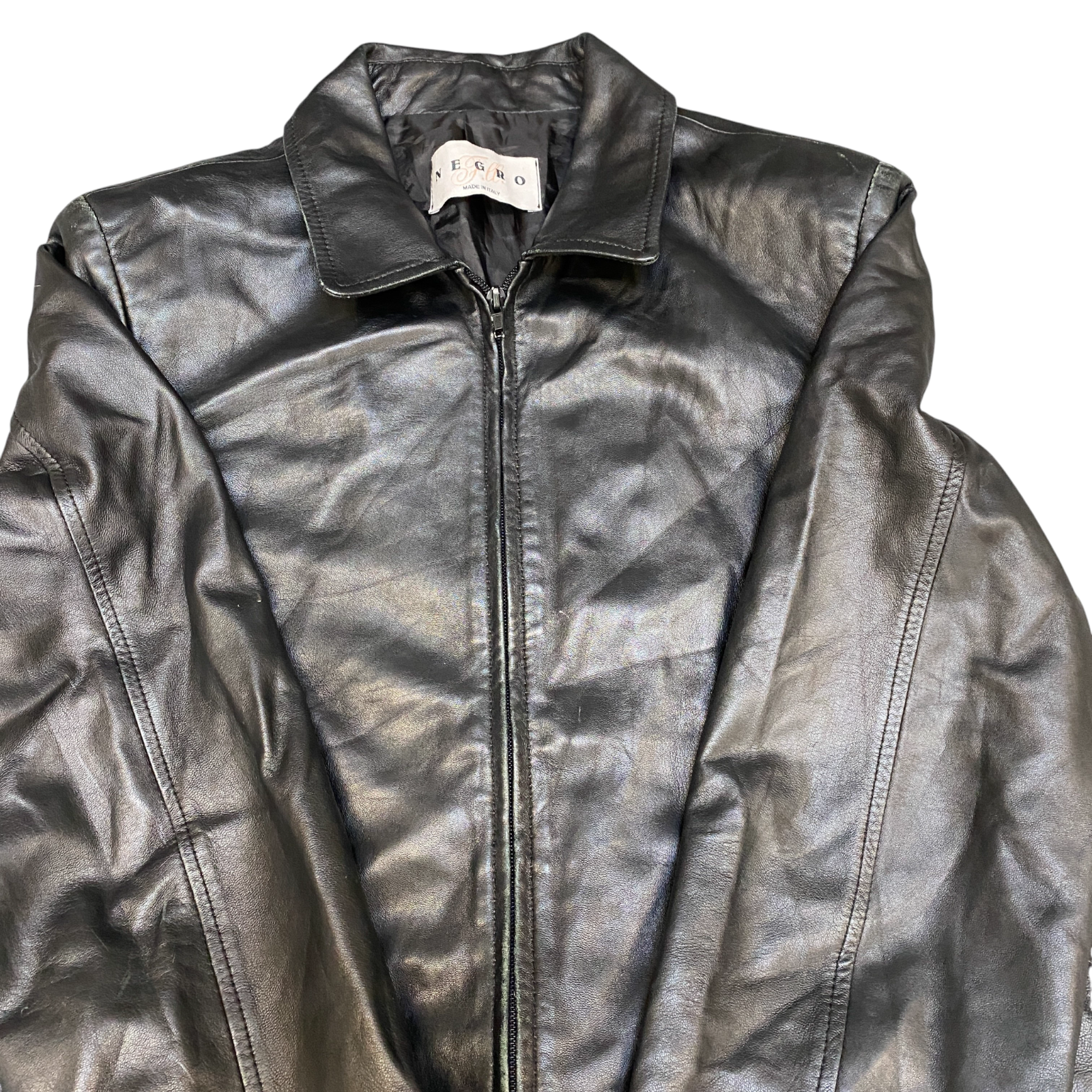 Negro F.lli Leather Jacket Womens Medium Black Lined Long Sleeve Collared Zipper