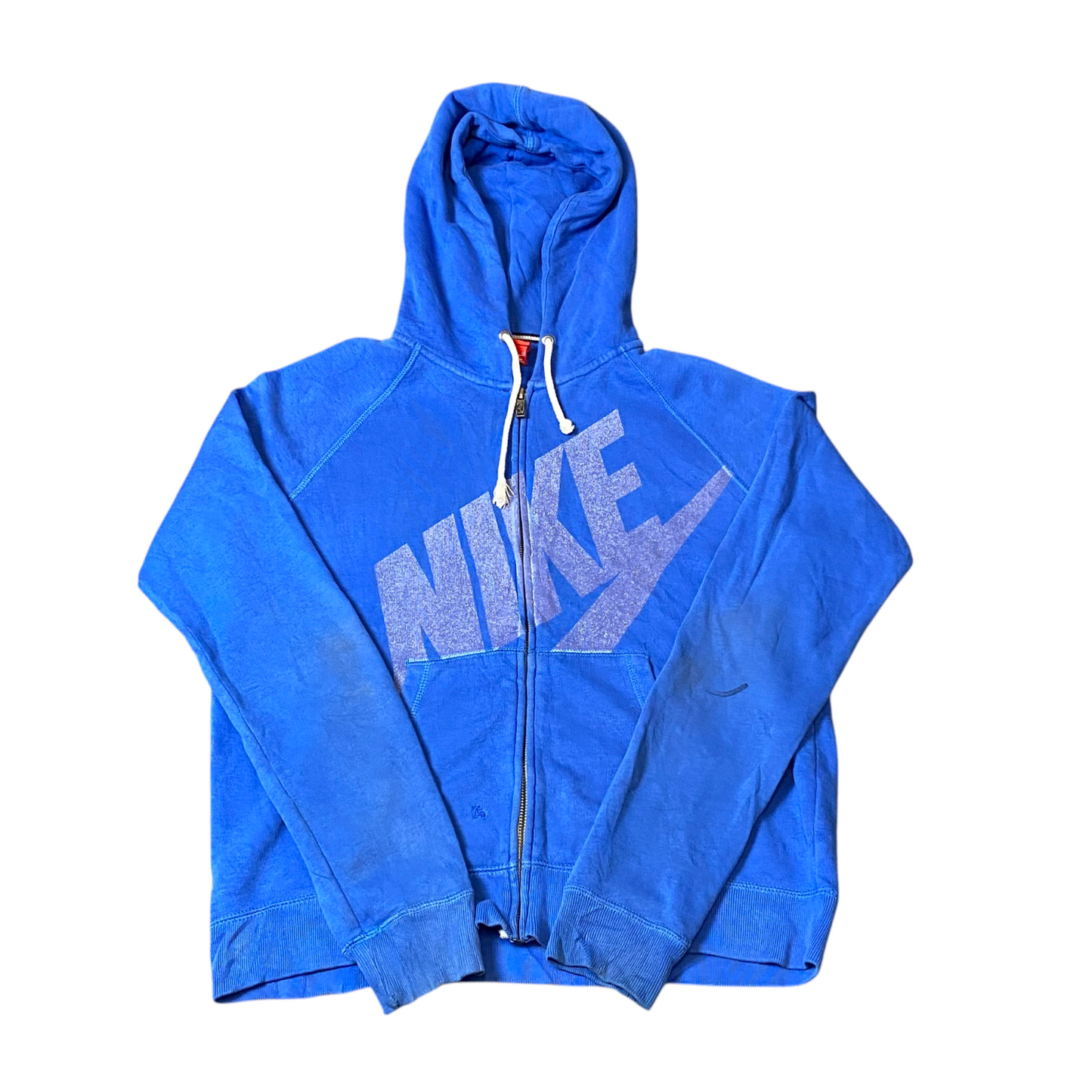 Nike Reworked Hoodie Mens Medium Blue Spellout Logo Kangaroo Pocket Full Zipper