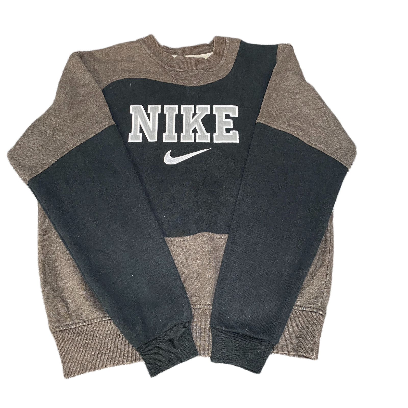 Nike Reworked Sweatshirt Men M Black Brown Embroidered Spellout Logo Vintage Y2K