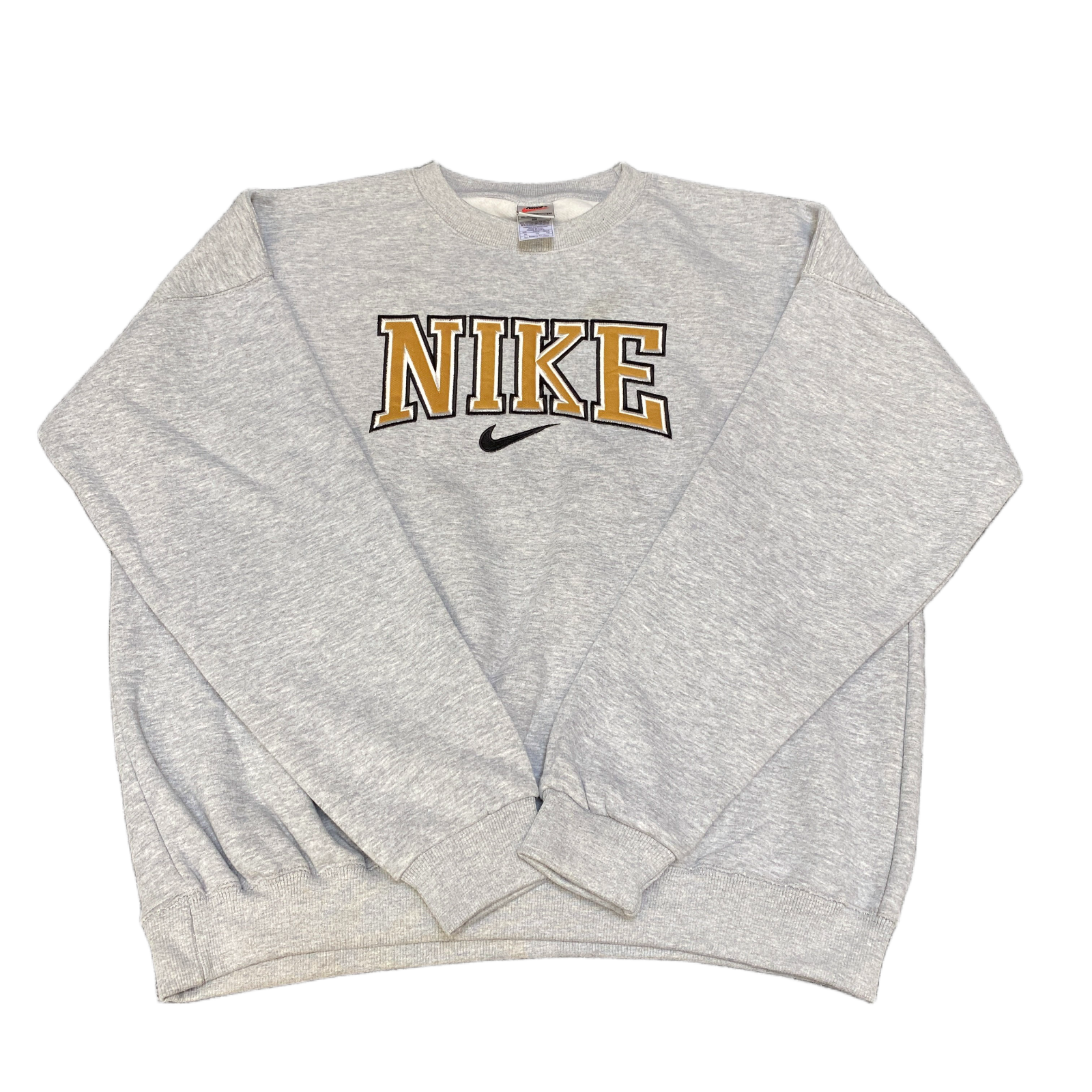 Nike Reworked Sweatshirt Men XL Grey Comfy Embroidered Spellout Logo Vintage Y2K