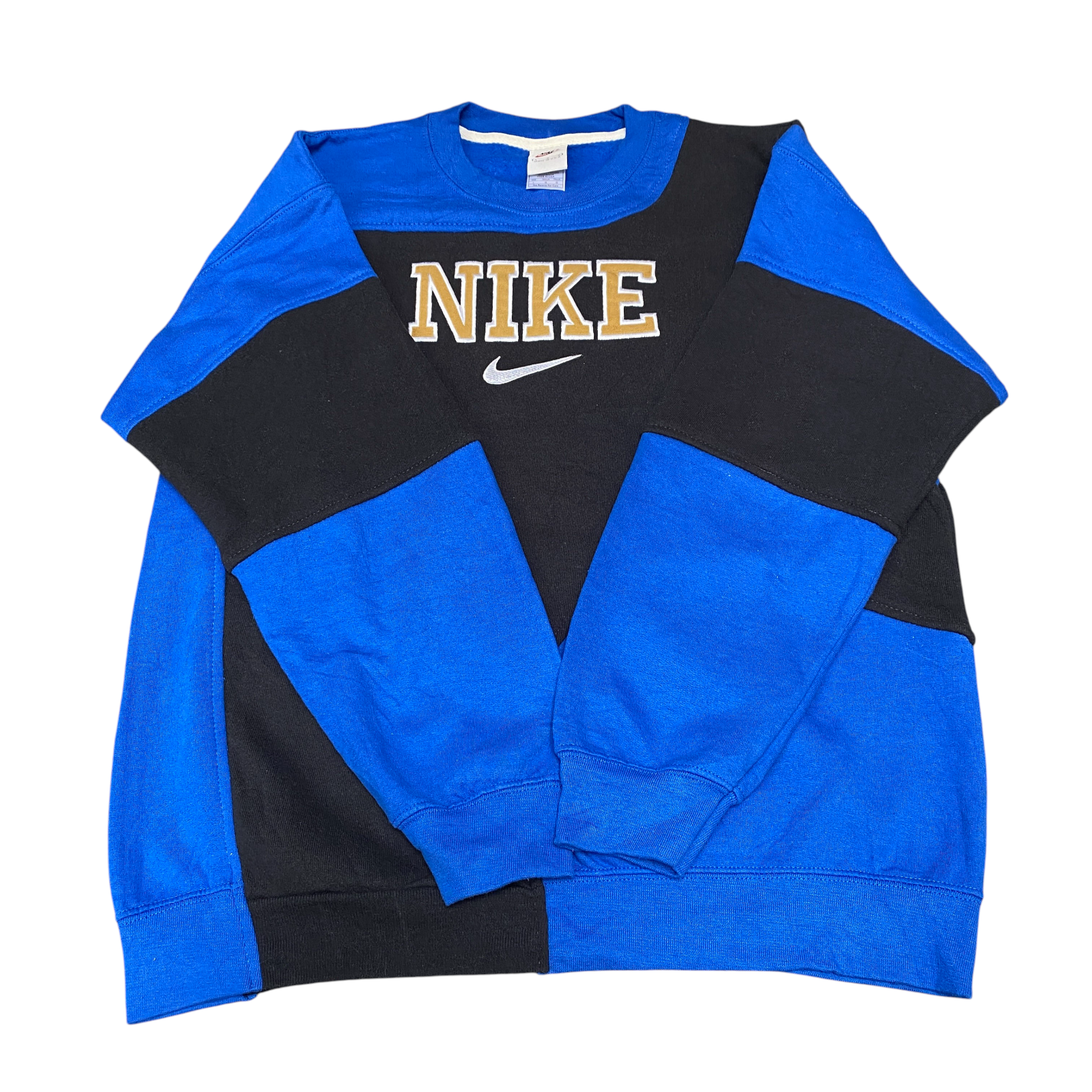 Nike Reworked Sweatshirt Mens L Black Blue Embroidered Spellout Logo Vintage Y2K