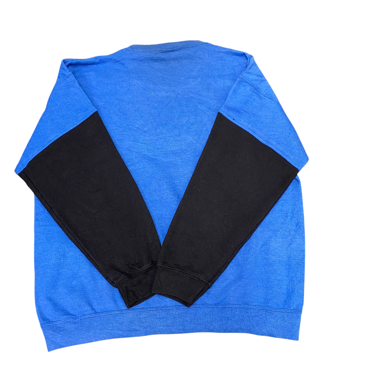 Nike Reworked Sweatshirt Mens L Blue Black Embroidered Spell Out Logo Crew Neck