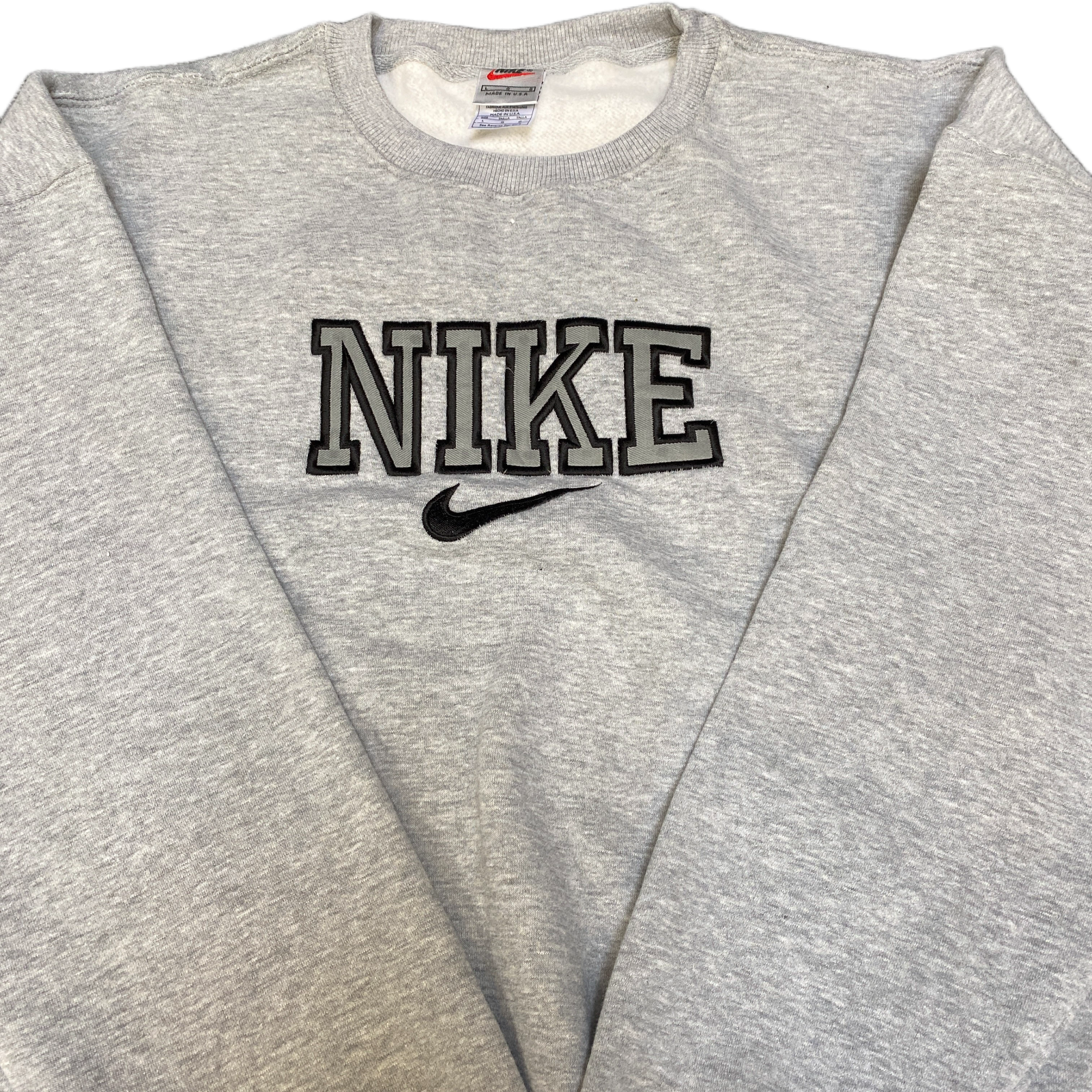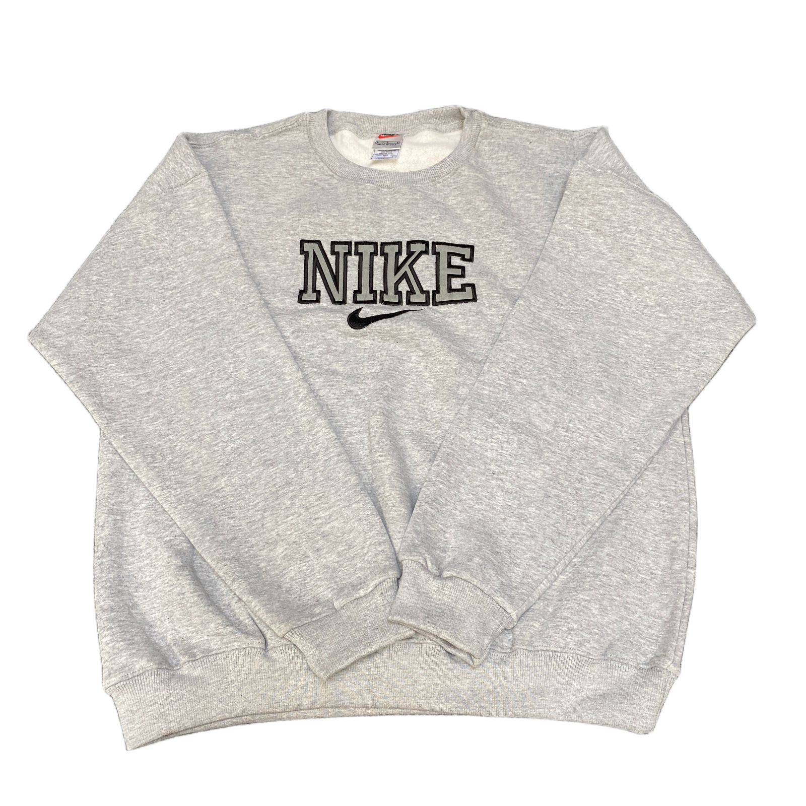 Nike Reworked Sweatshirt Mens Large Grey Embroidered Spellout Logo Vintage Y2K