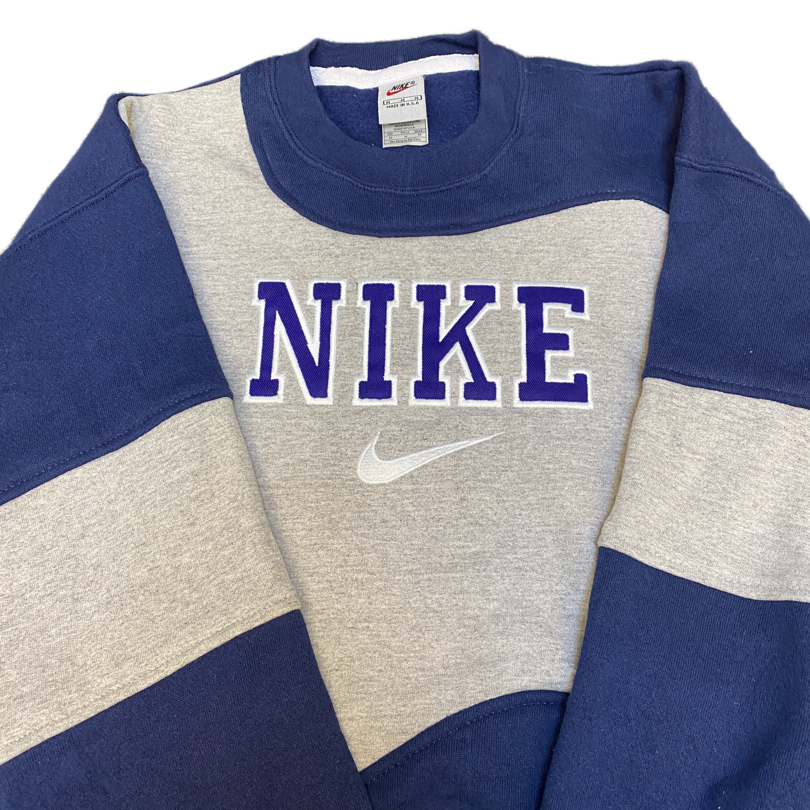Nike Reworked Sweatshirt Mens M Grey Blue Embroidered Spellout Logo Vintage Y2K