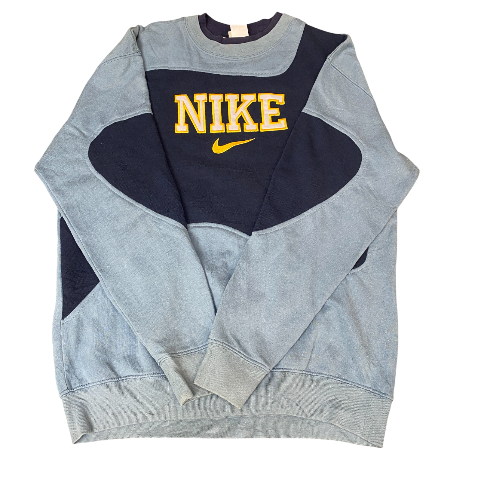 Nike Reworked Sweatshirt Mens M Navy Blue Embroidered Spellout Logo Vintage Y2K