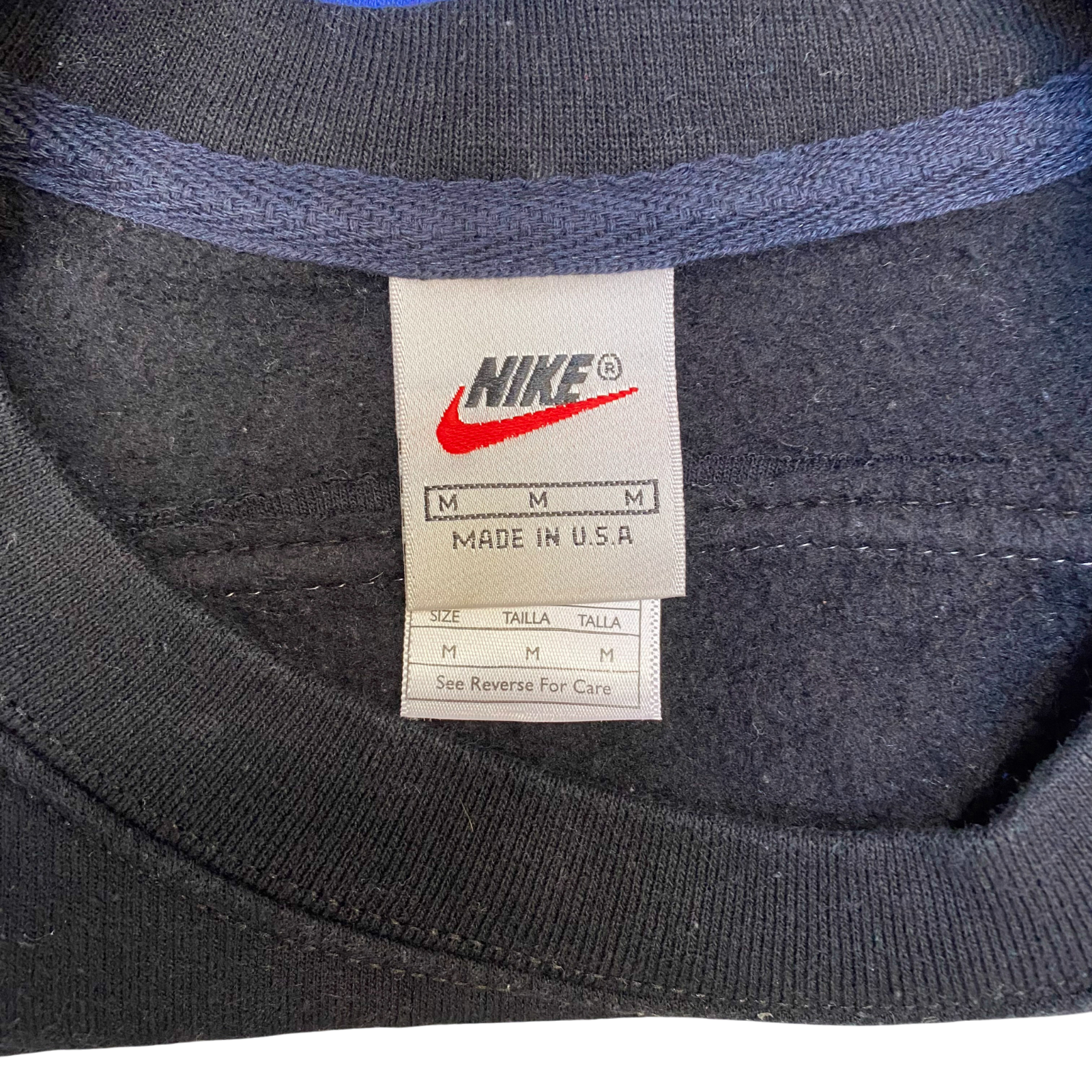 Nike Reworked Sweatshirt Mens Medium Blue Black Embroidered Spell Out Logo