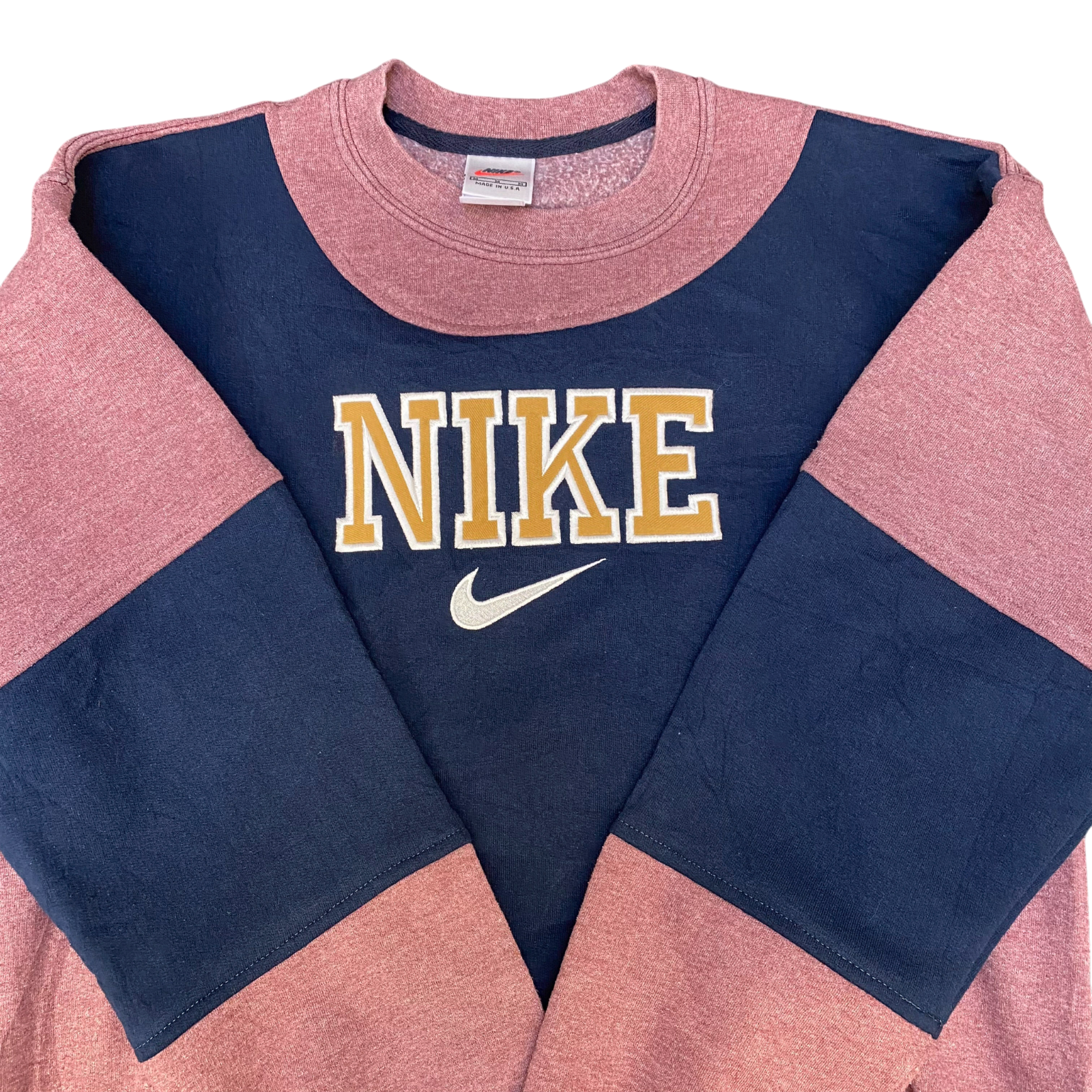 Nike Reworked Sweatshirt Mens Medium Brown Blue Embroidered Spell Out Logo