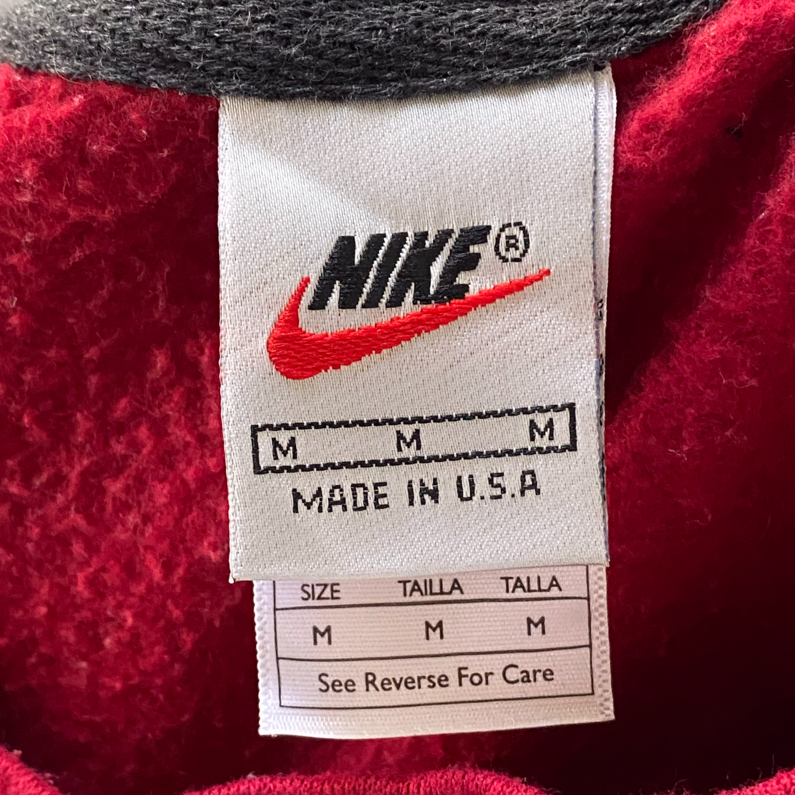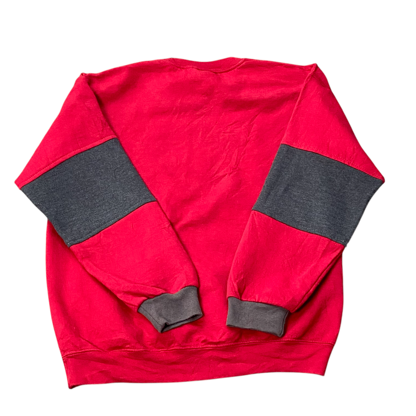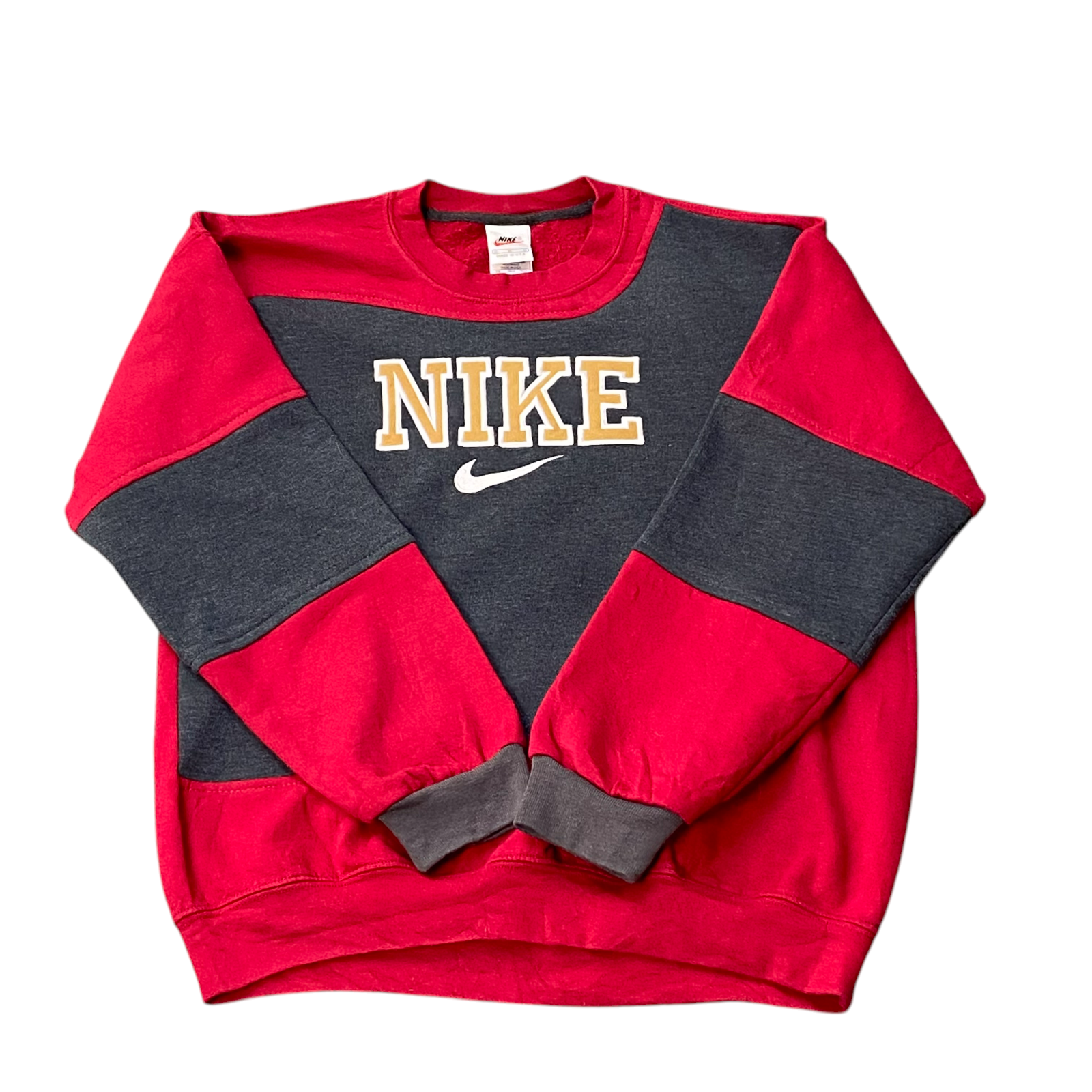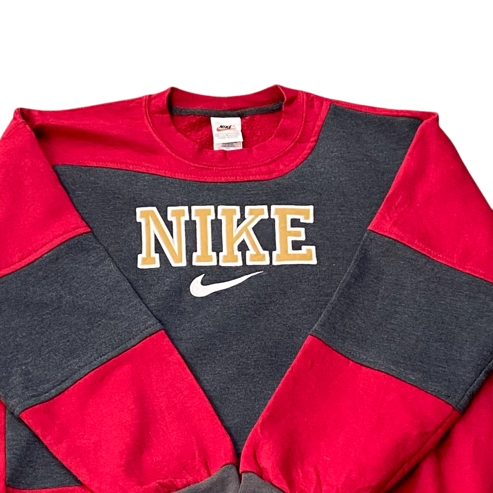 Nike Reworked Sweatshirt Mens Medium Red Grey Spellout Logo Crew Neck Vtg Y2K
