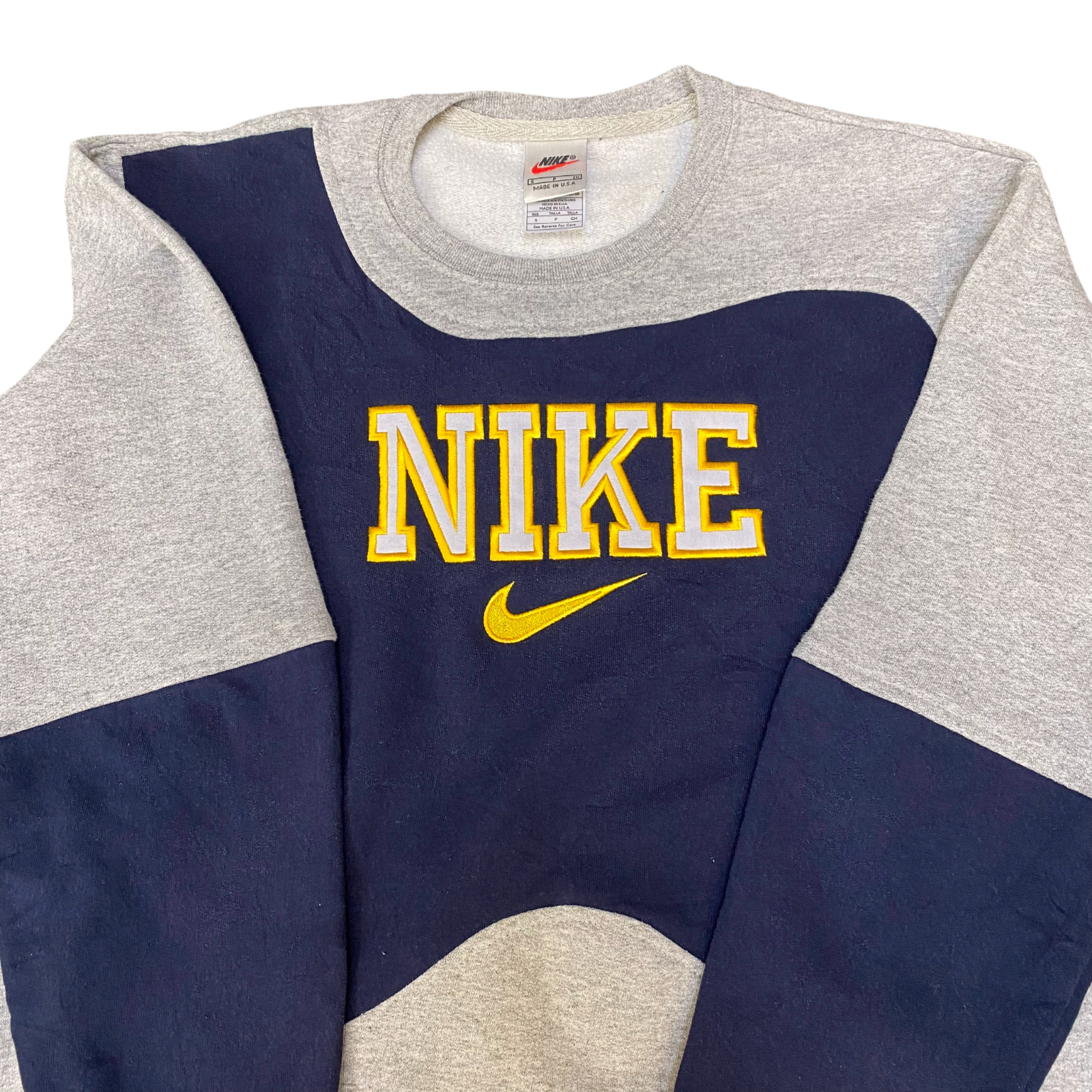 Nike Reworked Sweatshirt Mens S Blue Grey Embroidered Spellout Logo Vintage Y2K