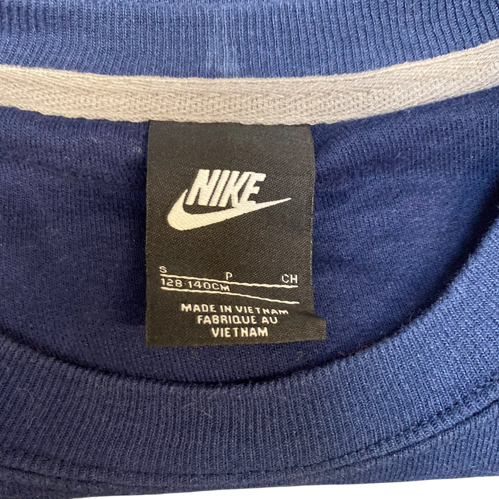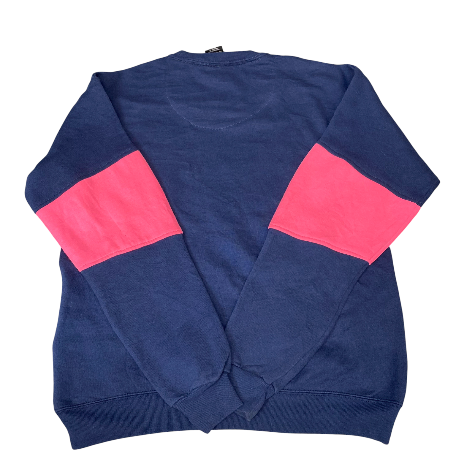 Nike Reworked Sweatshirt Mens S Navy Pink Embroidered Spellout Logo Vintage Y2K