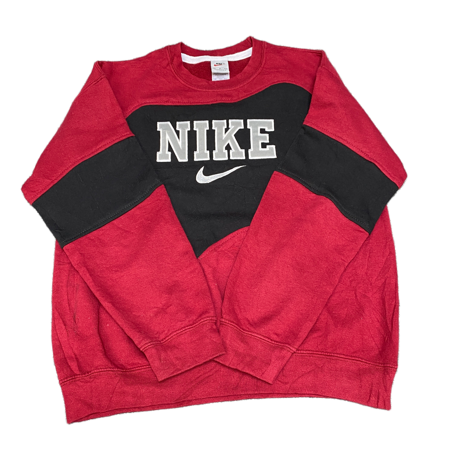 Nike Reworked Sweatshirt Mens S Red Black Embroidered Spellout Logo Vintage Y2K