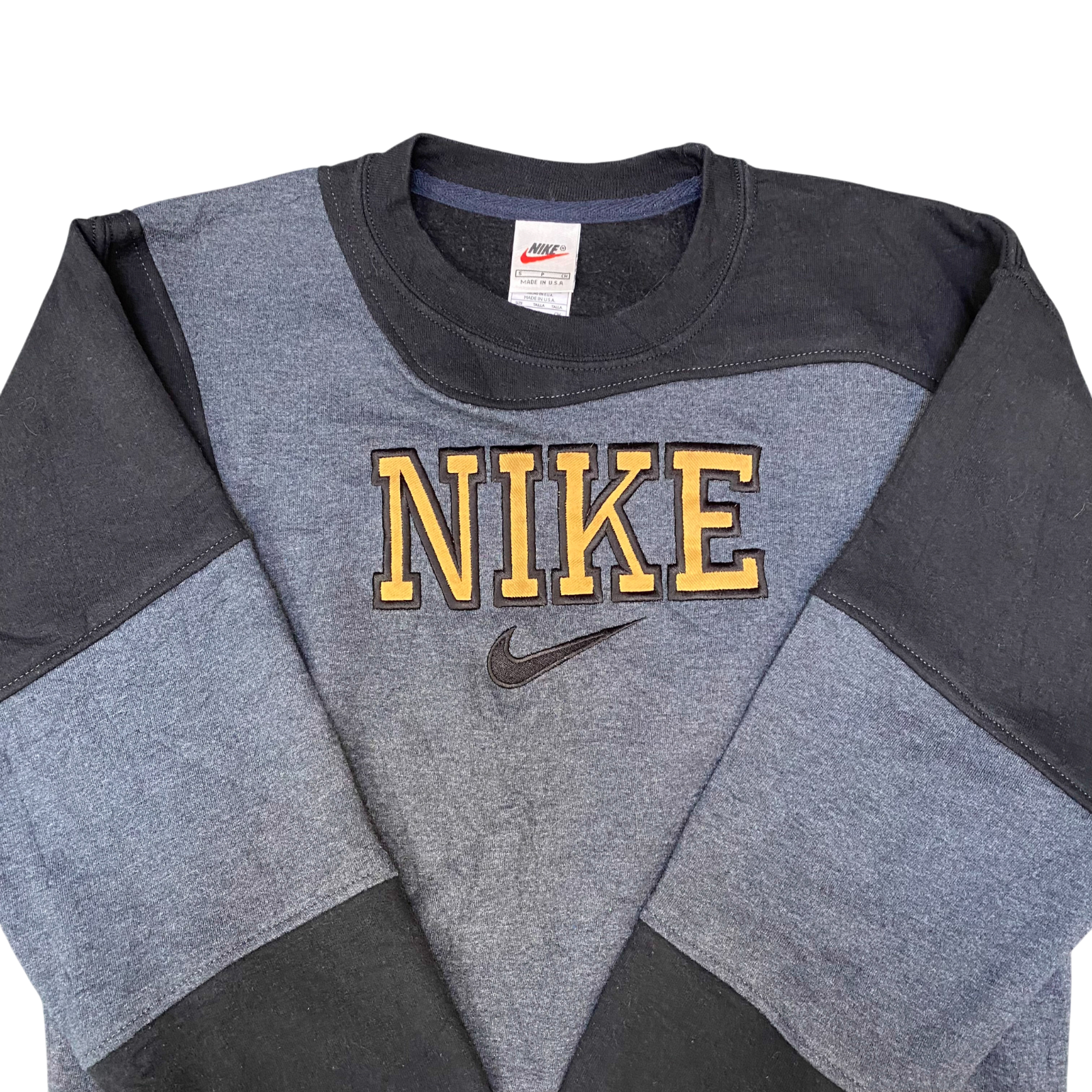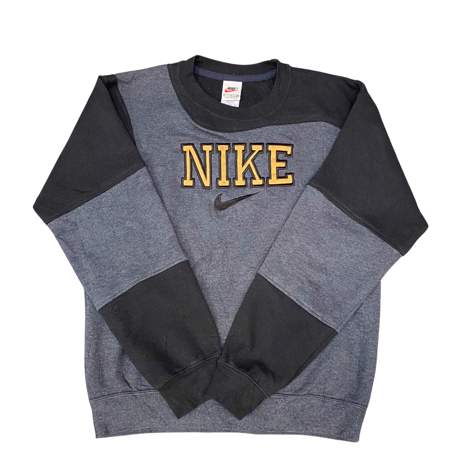 Nike Reworked Sweatshirt Mens Small Grey Black Embroidered Spell Out Logo Y2K