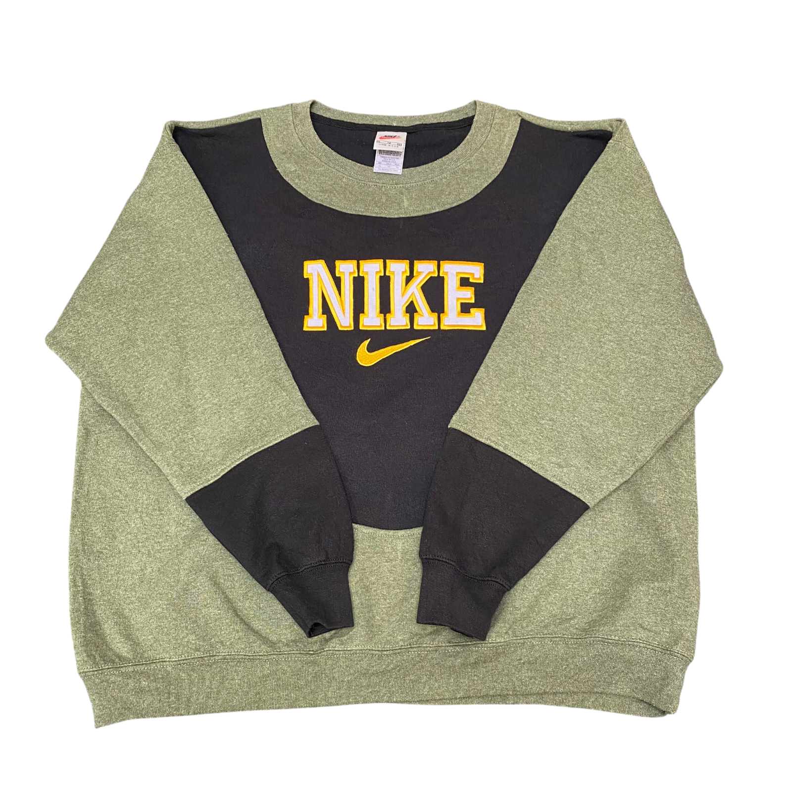 Nike Reworked Sweatshirt Mens XL Green Black Embroidered Spell Out Logo Y2K