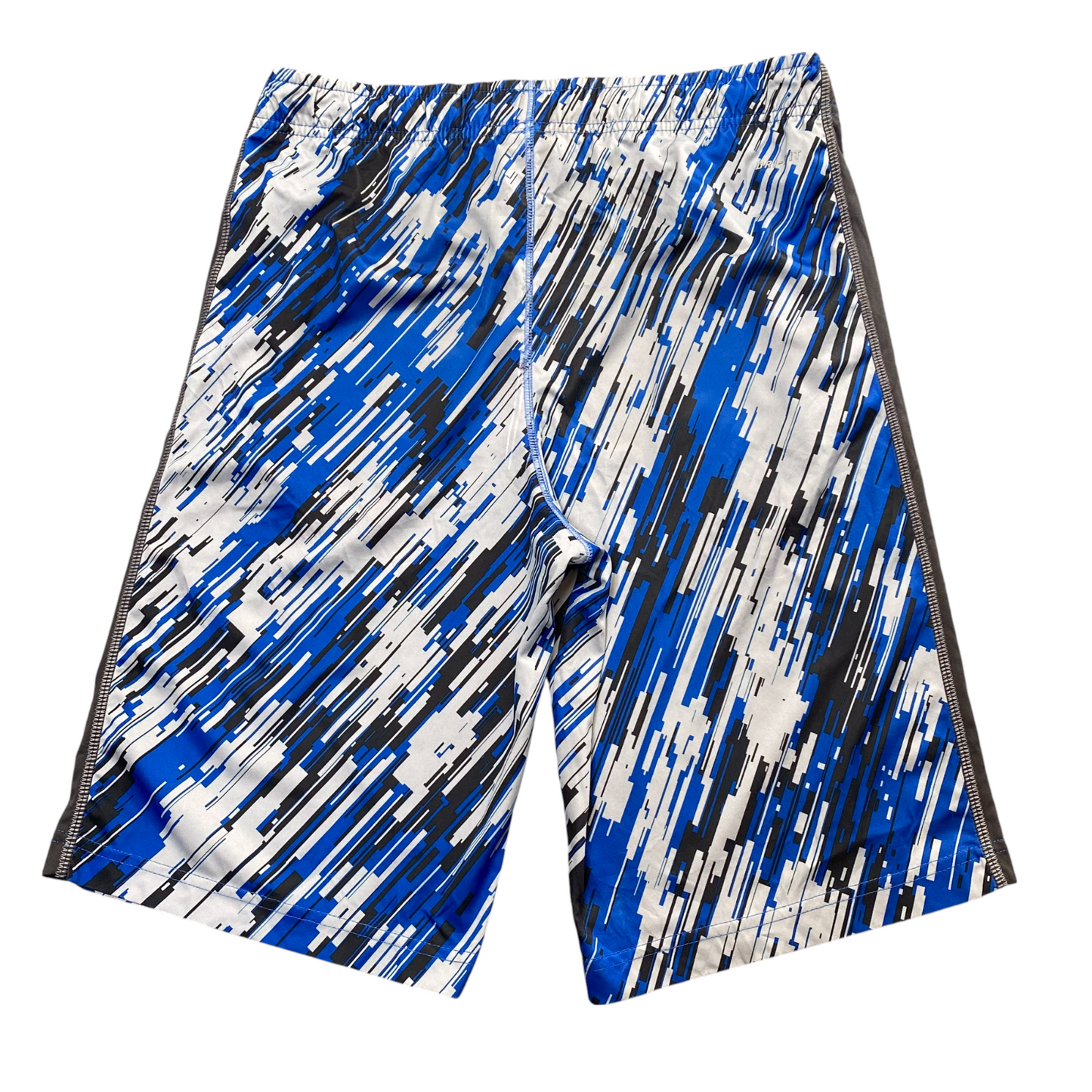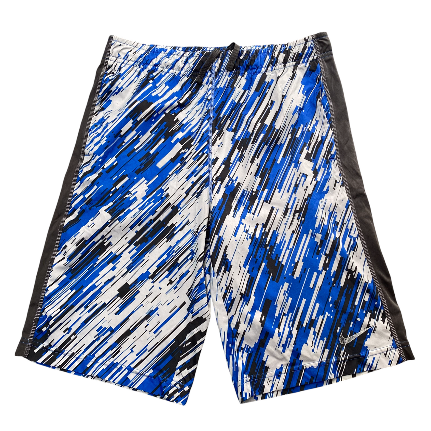 Nike Running Shorts Large Blue White Geometric Dri Fit Elastic Waist Athletic
