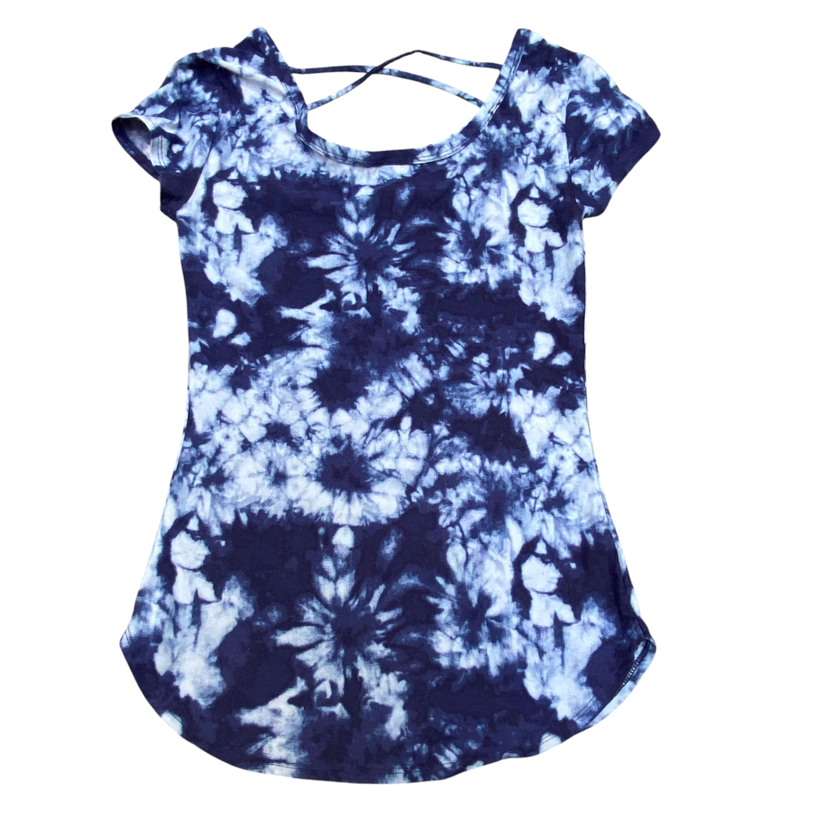 No Boundaries T Shirt Womens Blue Tie Dye Slim Fit Cap Sleeve Round Hem Pullover