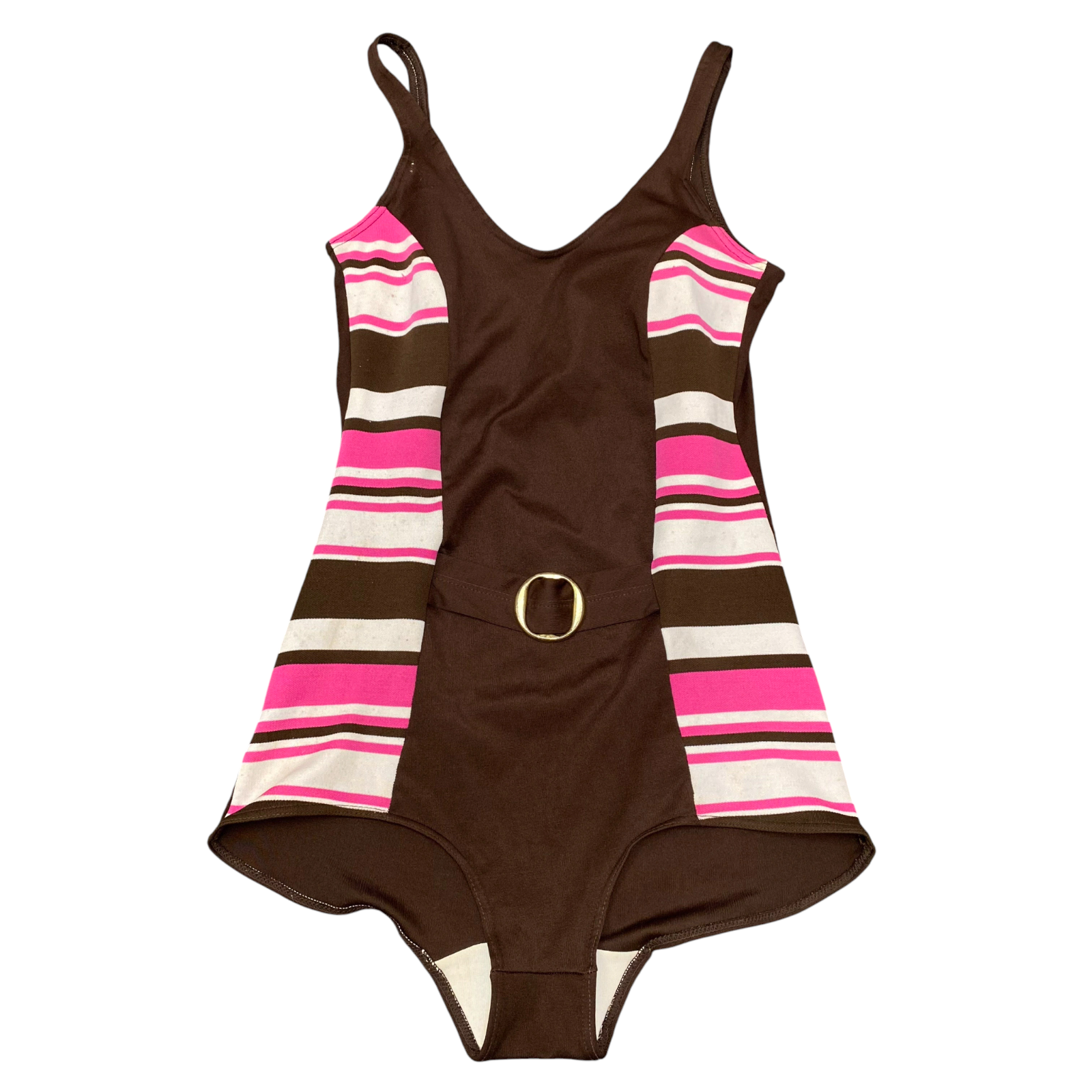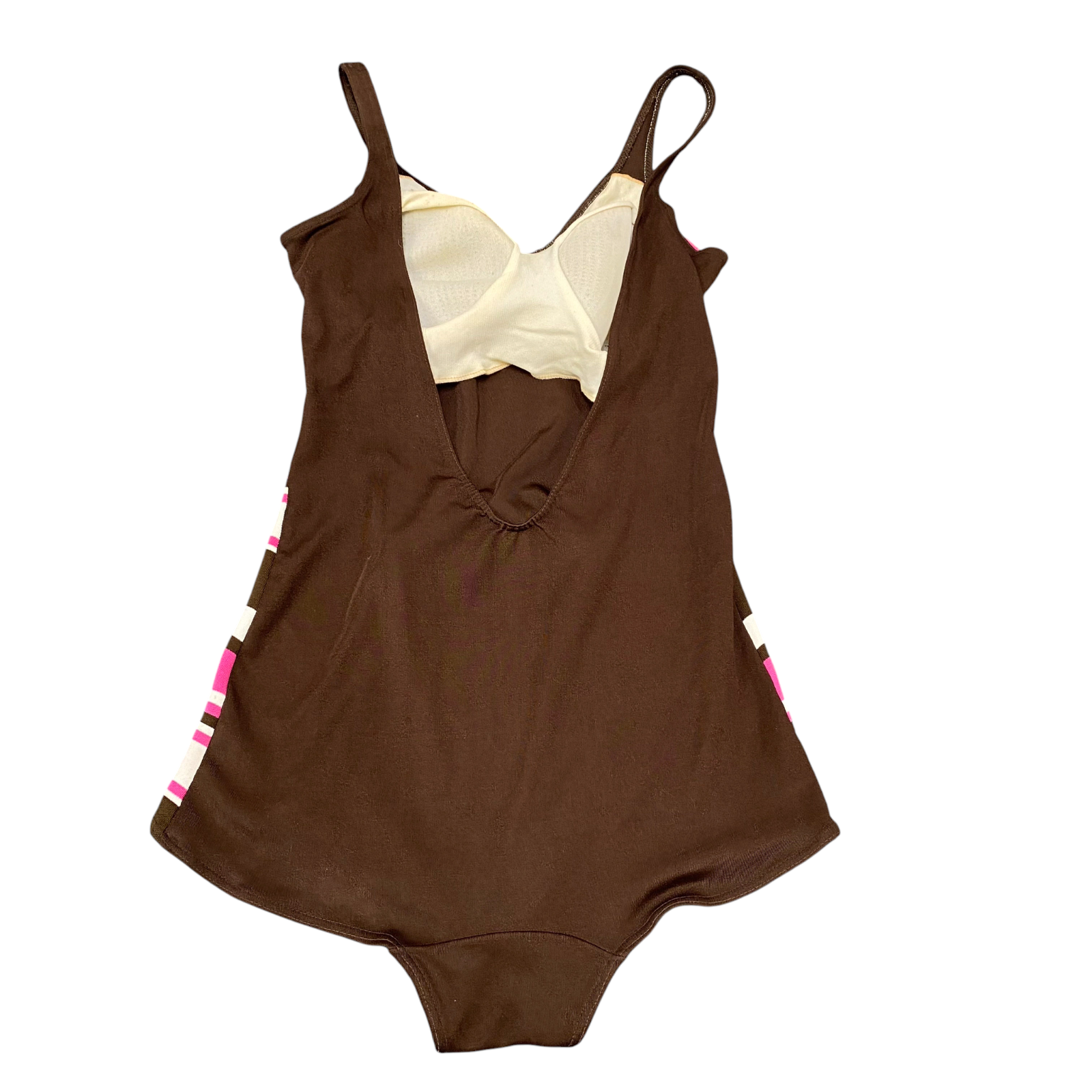 One Piece Swimsuit Womens S Brown Multi Striped O Ring Detail Padded Backless
