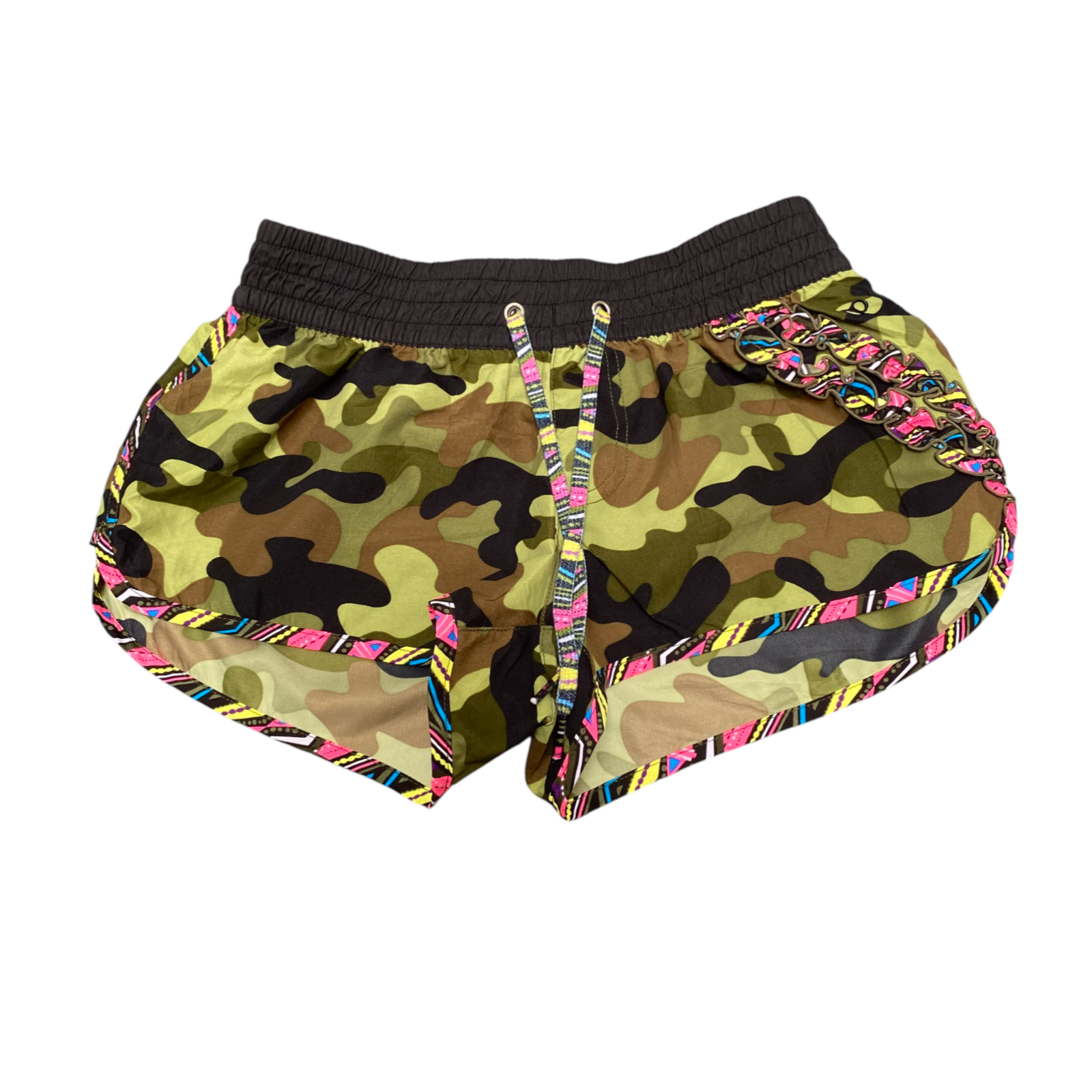 OP Pacific Running Sprinter Shorts Womens S Green Camo Plus Ruffle Elastic Waist