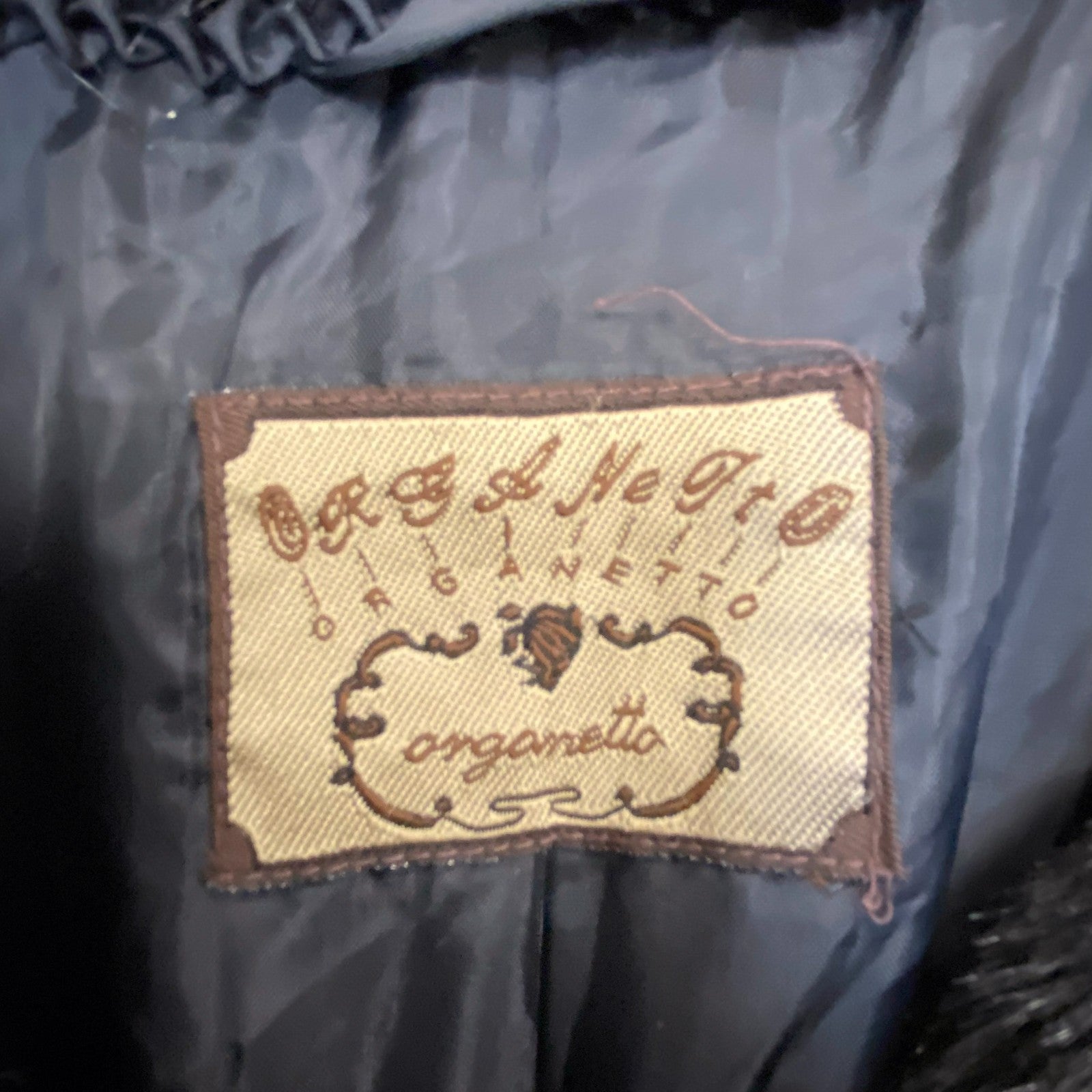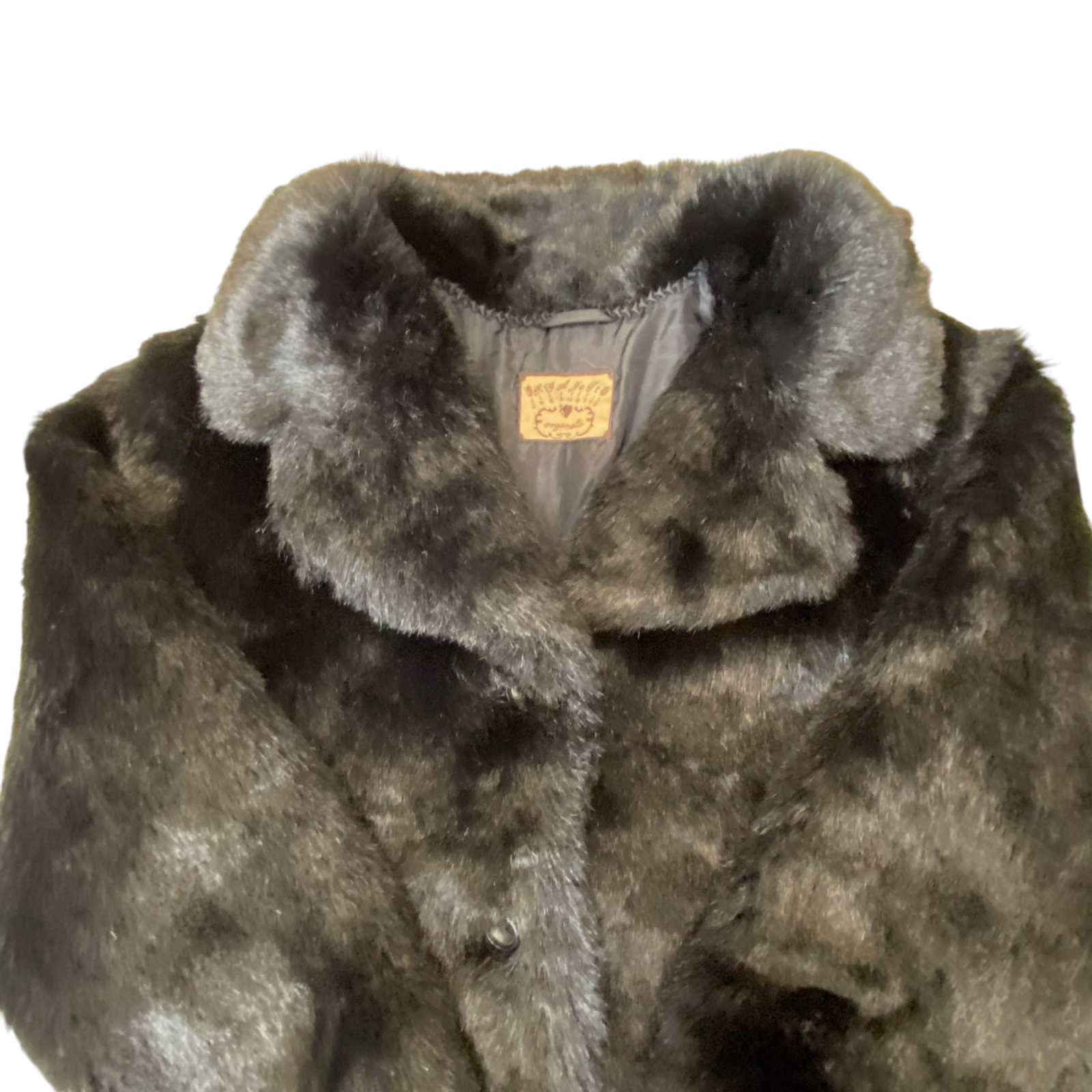 Organetto Coat Womens Large Black Faux Fur Notch Collar Long Sleeve Button Front