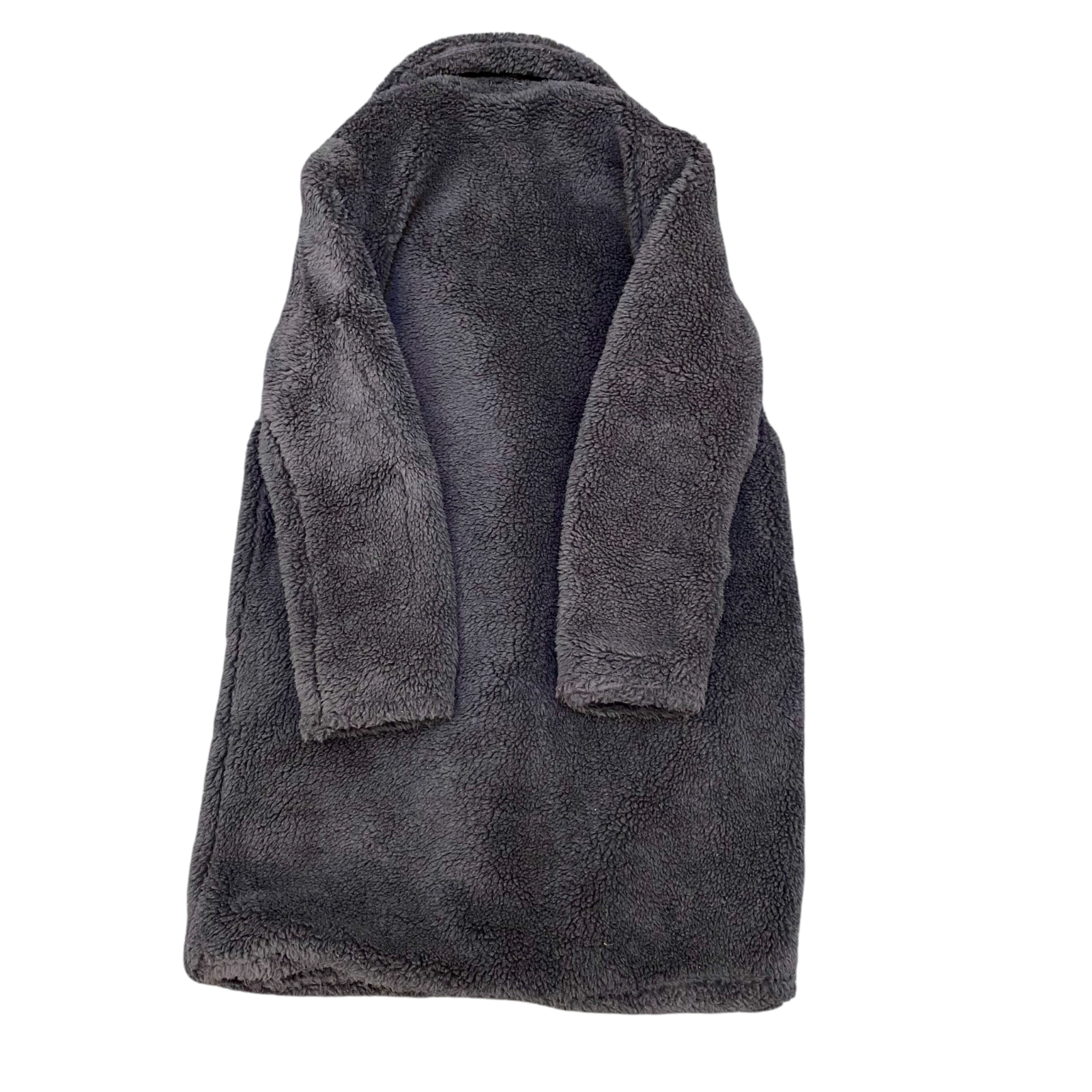 Page One Faux Fur Teddy Coat Womens L Grey Long Sleeve Notch Lapel Button Front