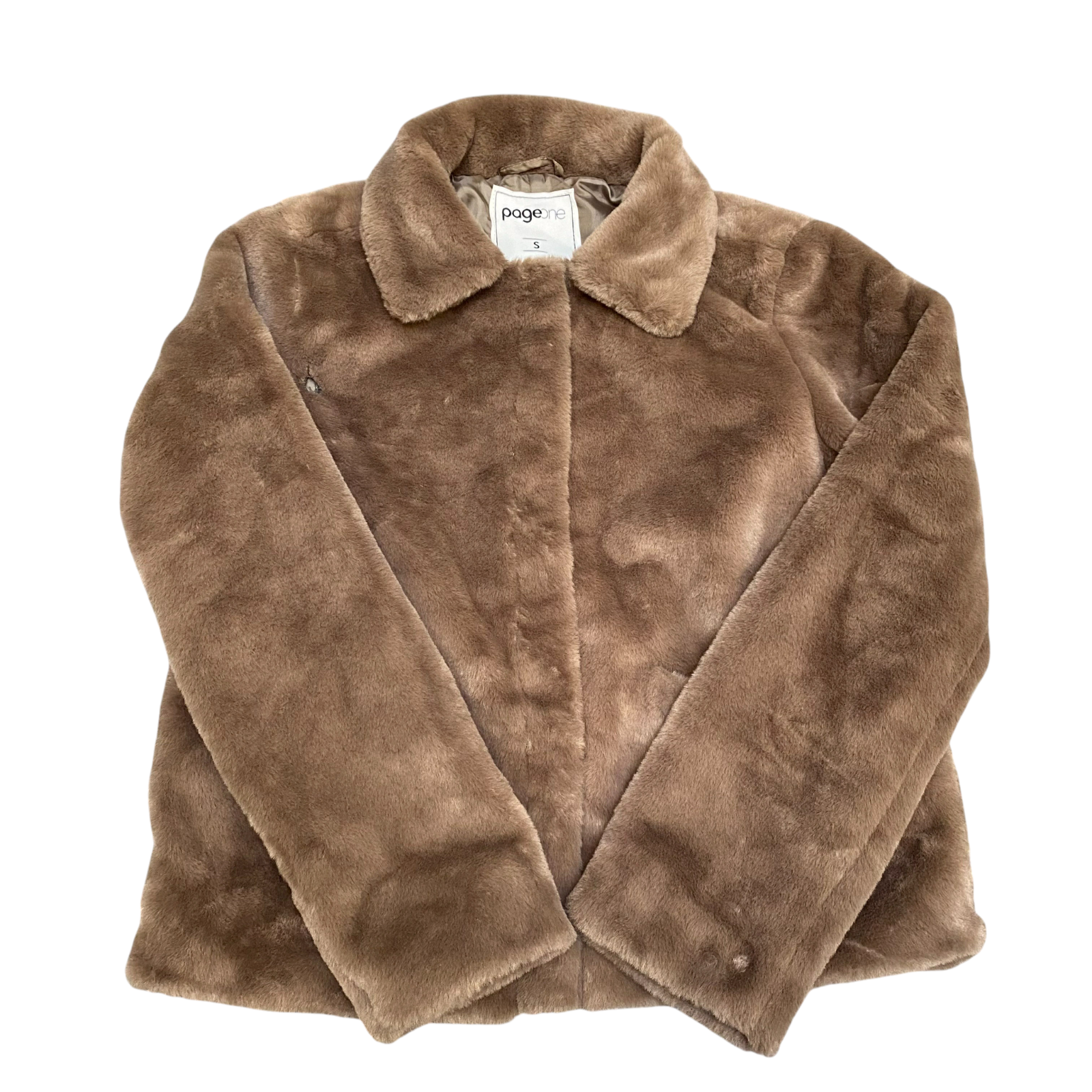 Pageone Faux Fur Jacket Womens Small Brown Lined Comfort Super Soft Long Sleeve