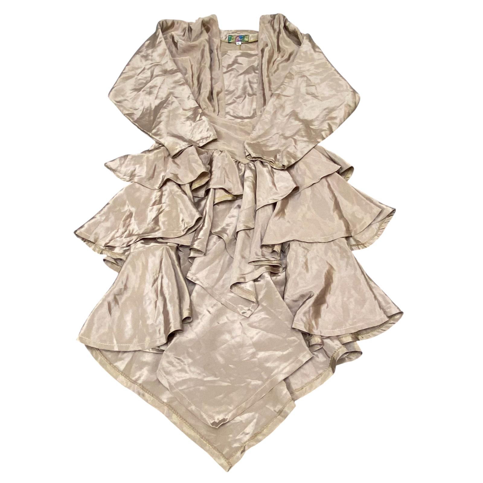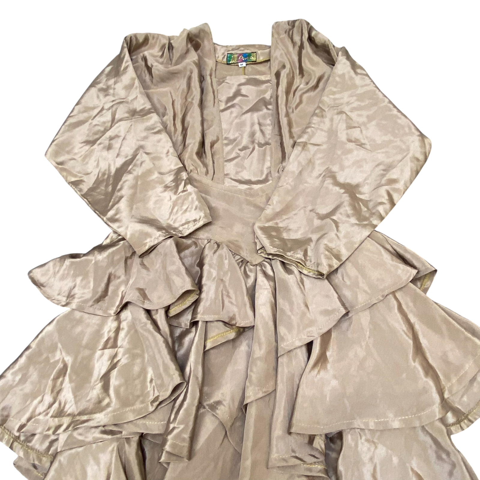 Paris Cocktail Dress Womens M Brown Satin Long Sleeve Layered Asymmetrical Hem