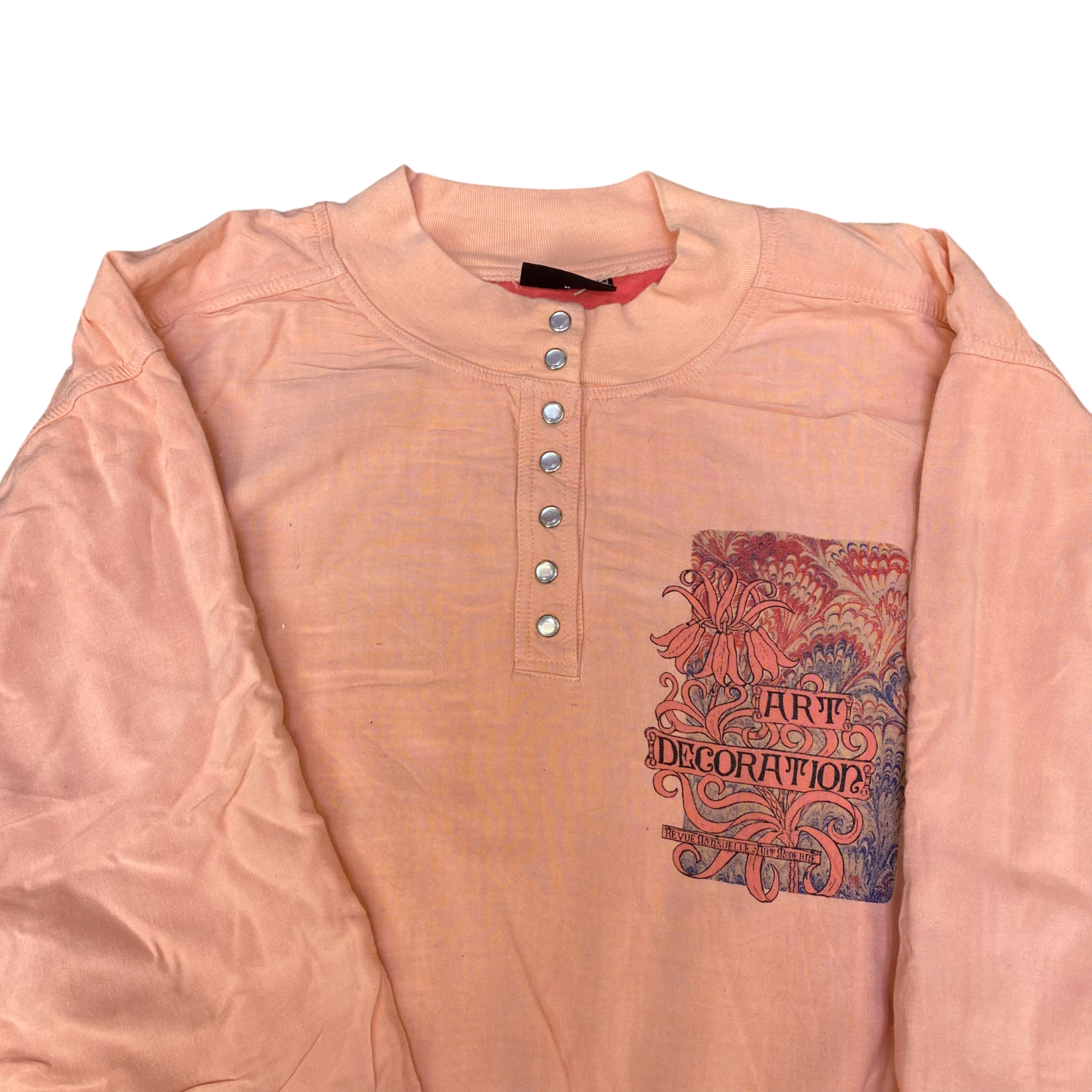 Passport Sweatshirt Womens Large Pink Art Decoration Graphic 1/4 Snap Front