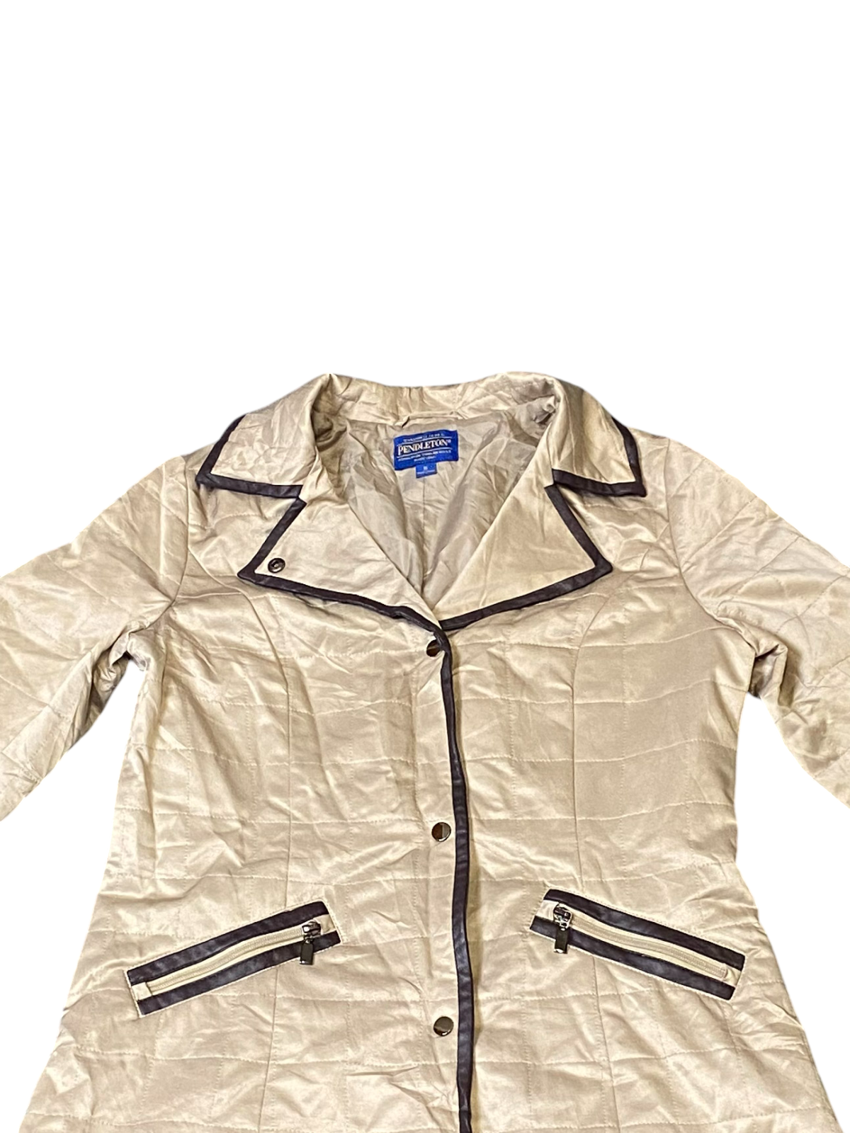 Pendleton Jacket Womens Medium Beige Quilted Long Sleeve Pocket Button Front