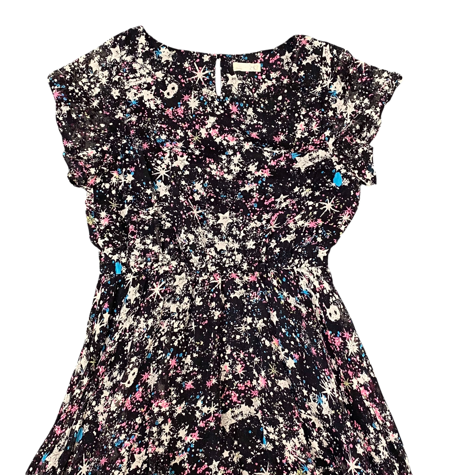 Phrase Shift Dress Womens S Black Geometric Pleated Cap Sleeve Keyhole Back