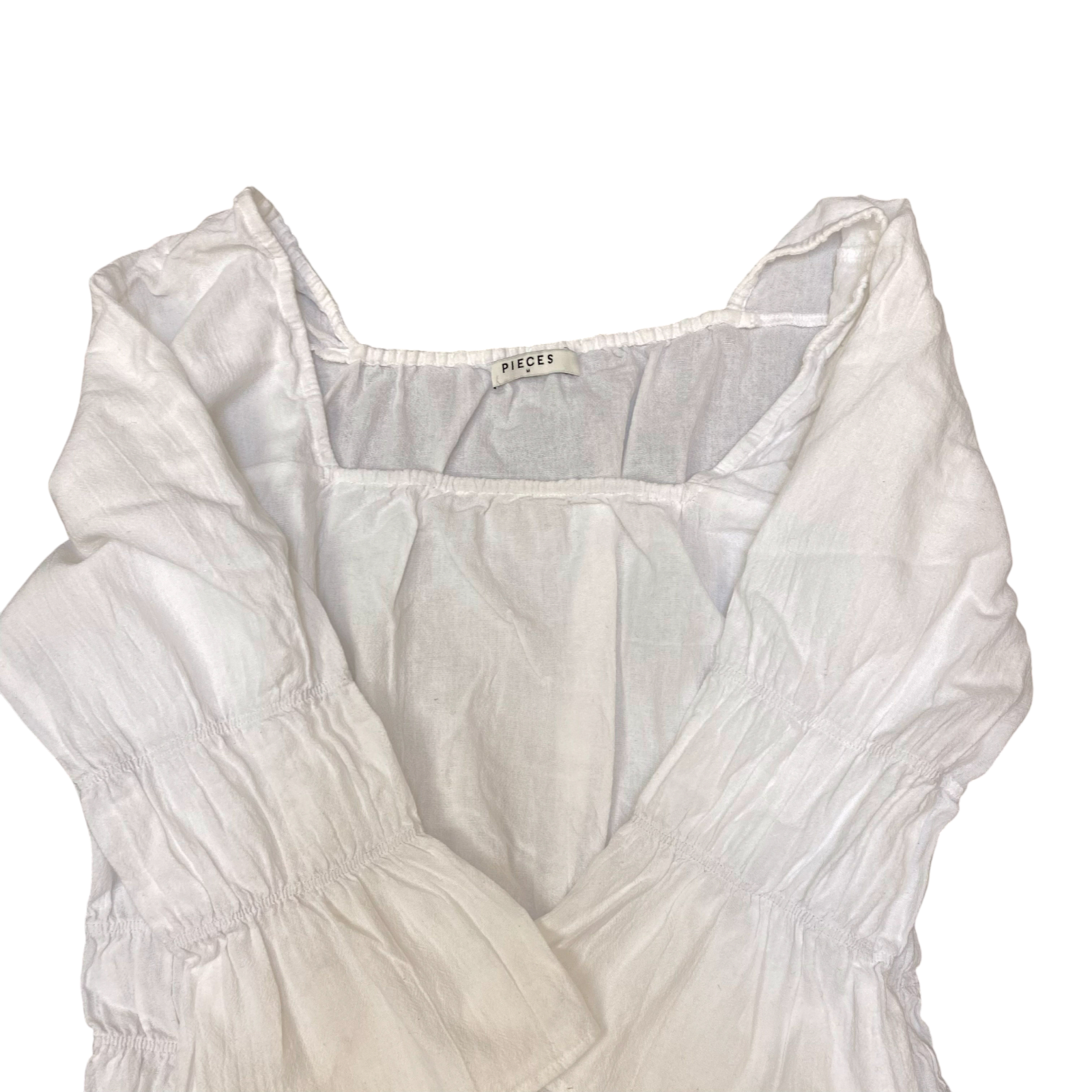 Pieces Blouse Top Womens M White Long Flared Sleeve Square Neck Peplum Hem