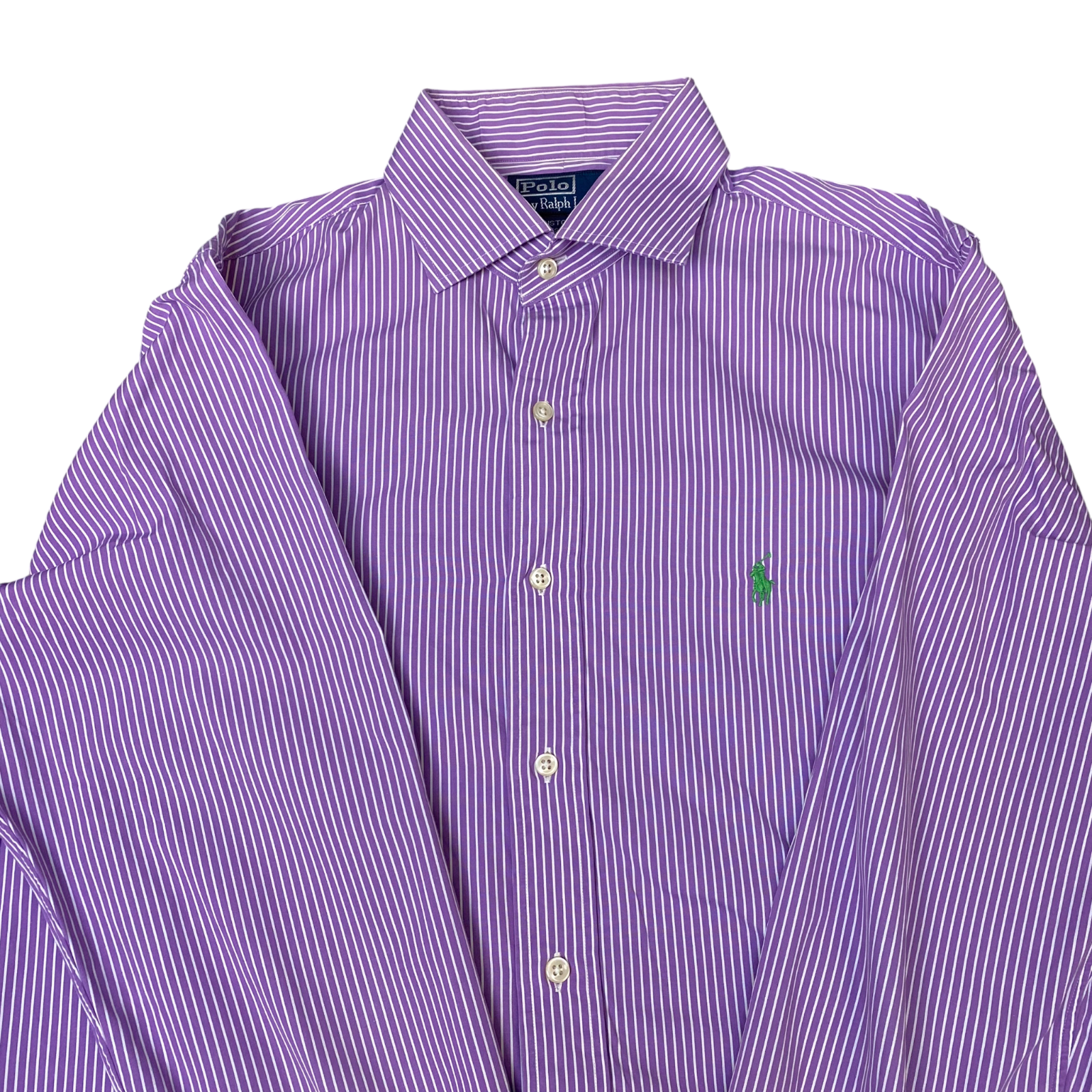 Polo Ralph Lauren Formal Shirt Mens L Purple Striped Custom Fit Logo Button Down