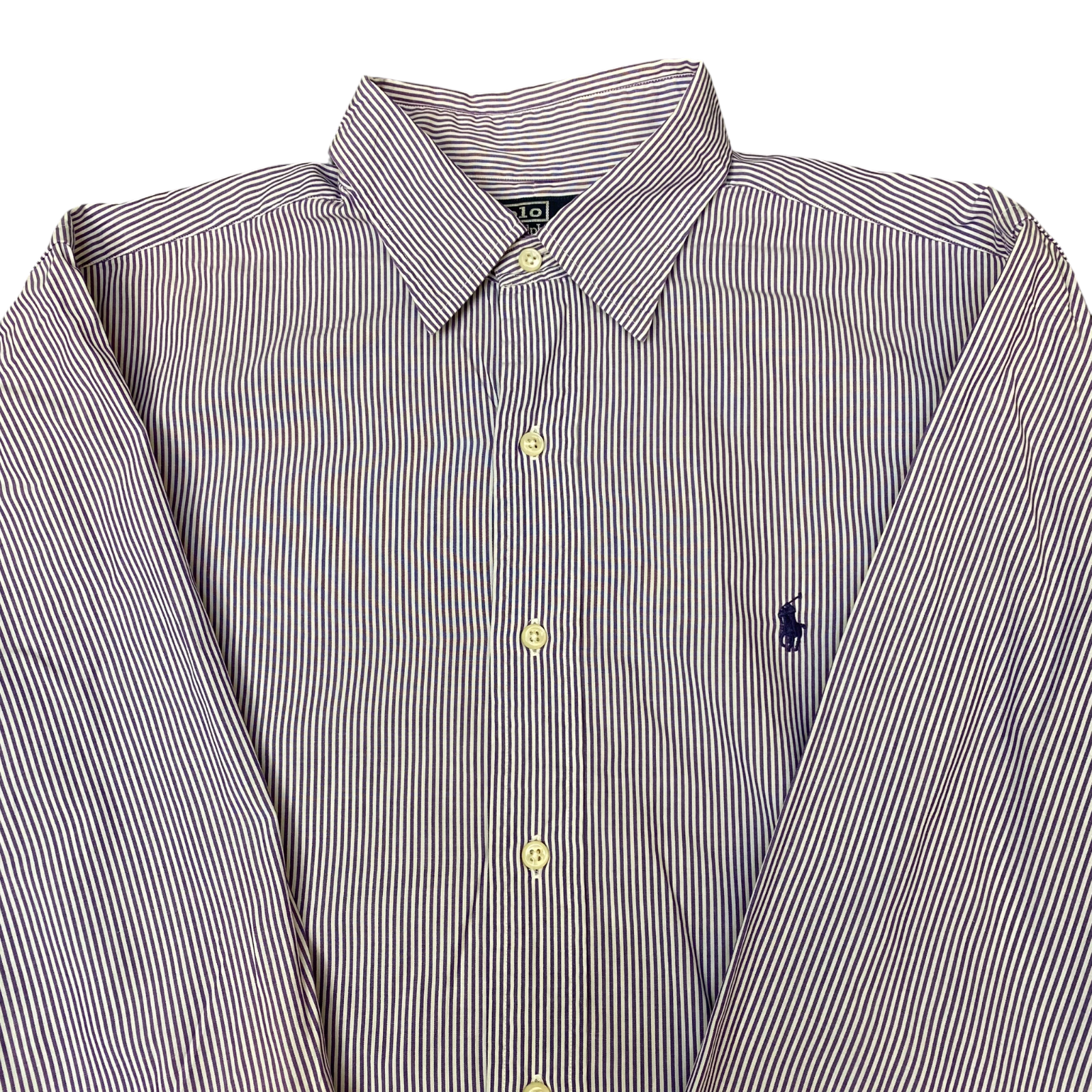Polo Ralph Lauren Formal Shirt Mens L Purple White Striped Lowell Button Down