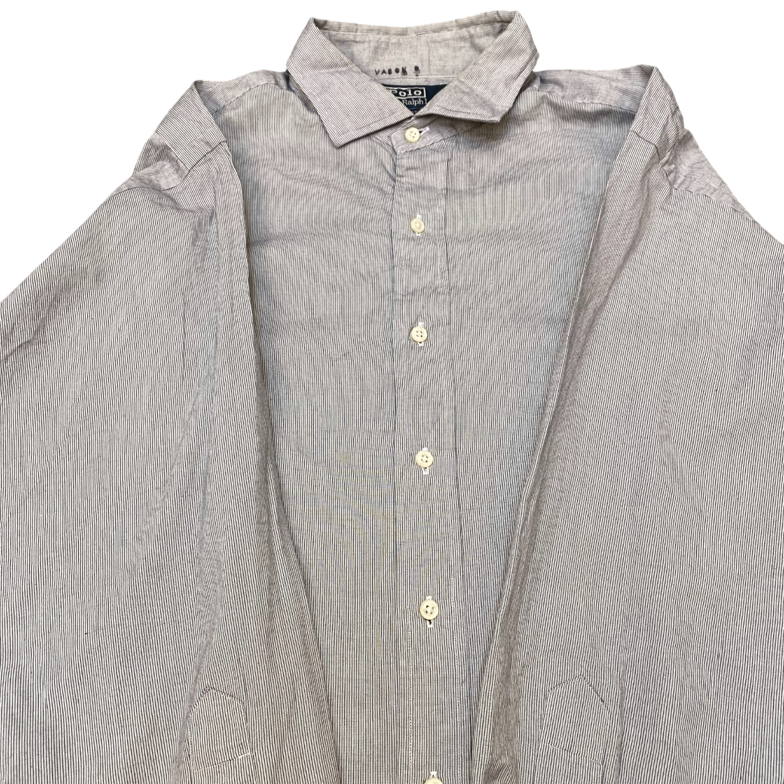 Polo Ralph Lauren Formal Shirt Mens XL Grey Striped Long Sleeve Logo Button Down