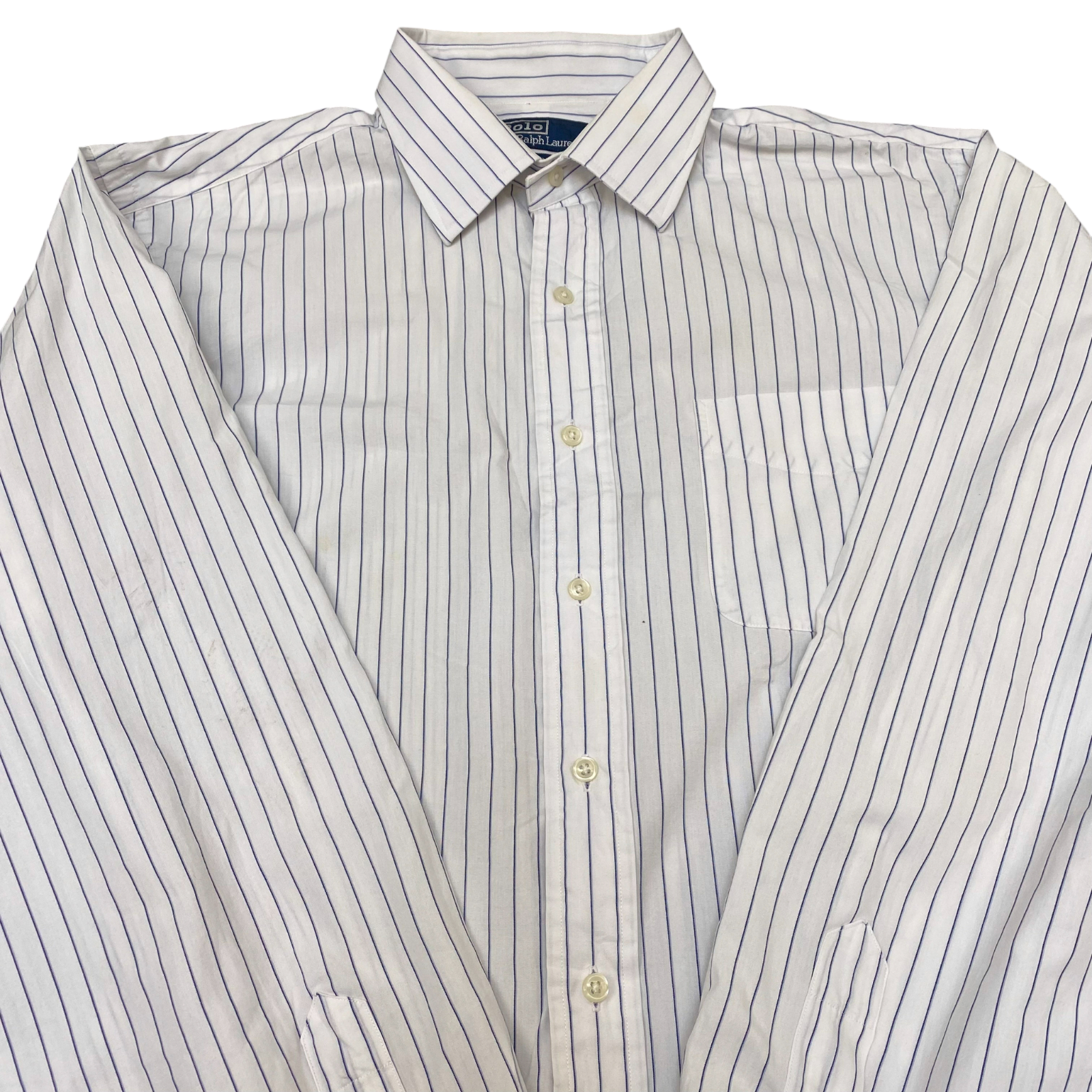 Polo Ralph Lauren Formal Shirt Mens XL White Blue Striped Long Sleeve Button Up