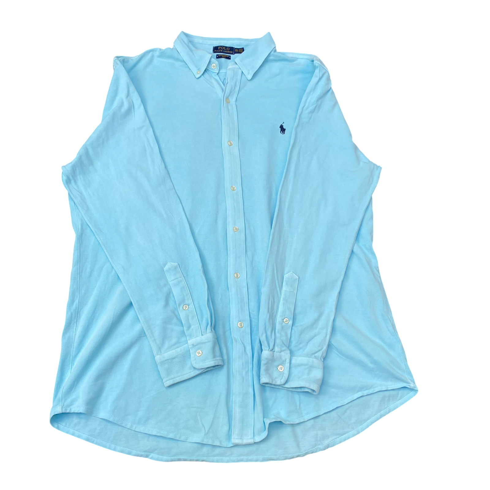 Polo Ralph Lauren Shirt Mens L Blue Mesh Long Sleeve Pony Logo Button Down
