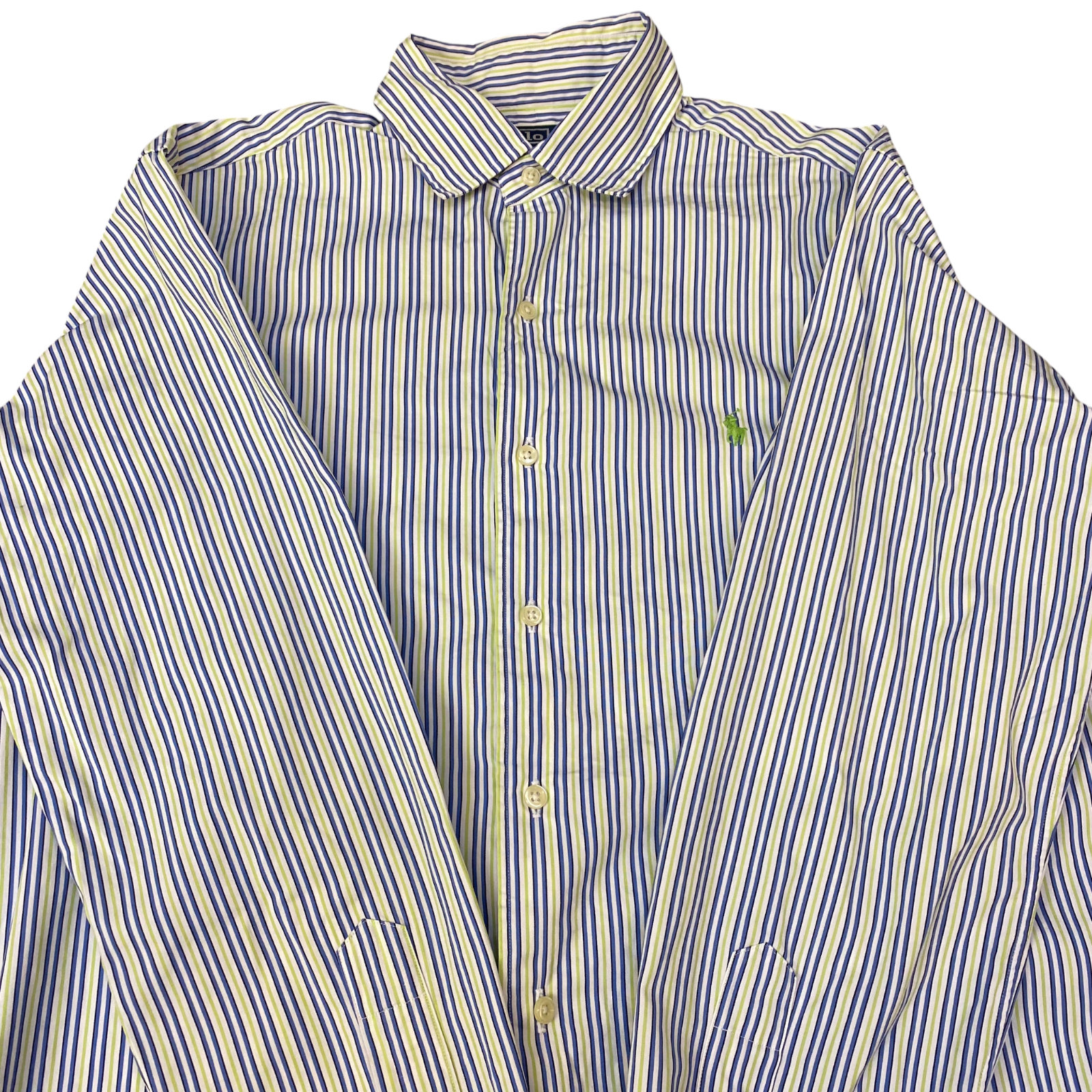 Polo Ralph Lauren Shirt Mens M Blue Green Striped Long Sleeve Pony Button Down