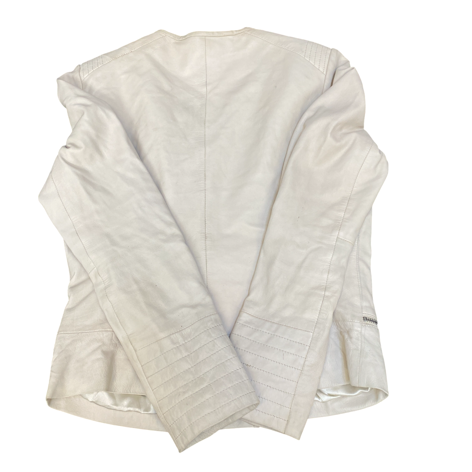 Promod Leather Motorcycle Jacket Women Medium White Long Sleeve Asymmetrical Zip