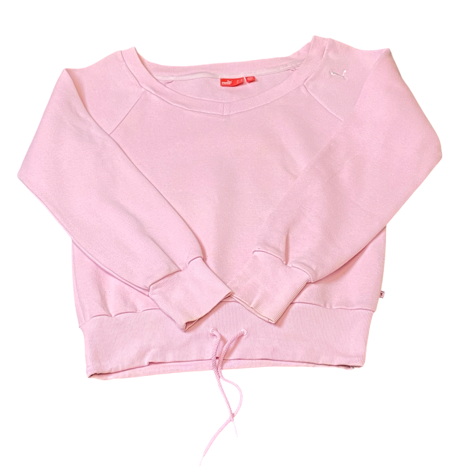 PUMA Sweatshirt Women Medium Pink Adjustable Hem Long Sleeve Round Neck Pullover