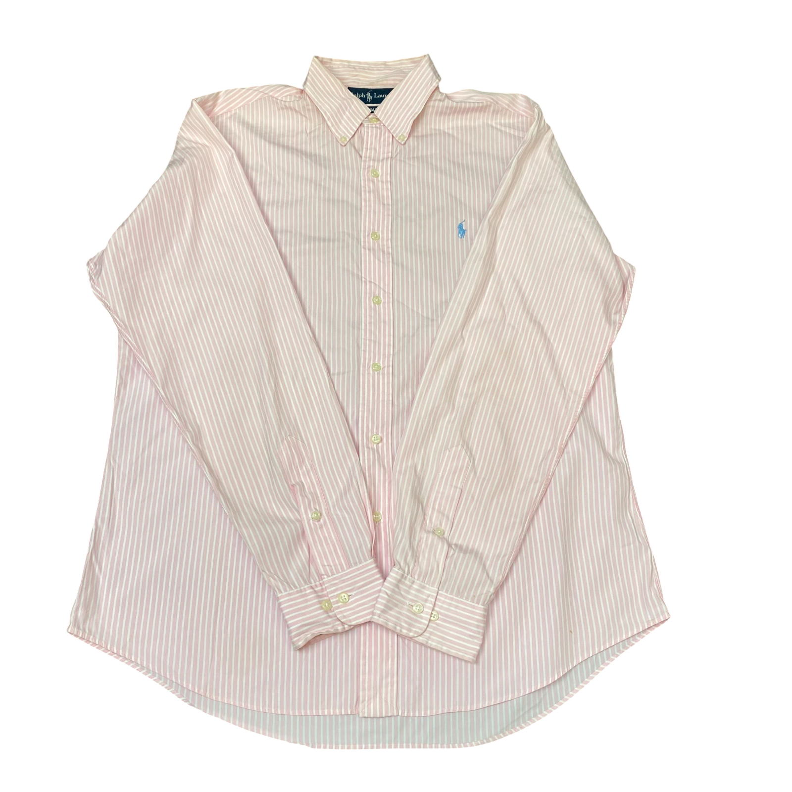 Ralph Lauren Formal Shirt Mens L Pink Striped Custom Fit Long Sleeve Button Down