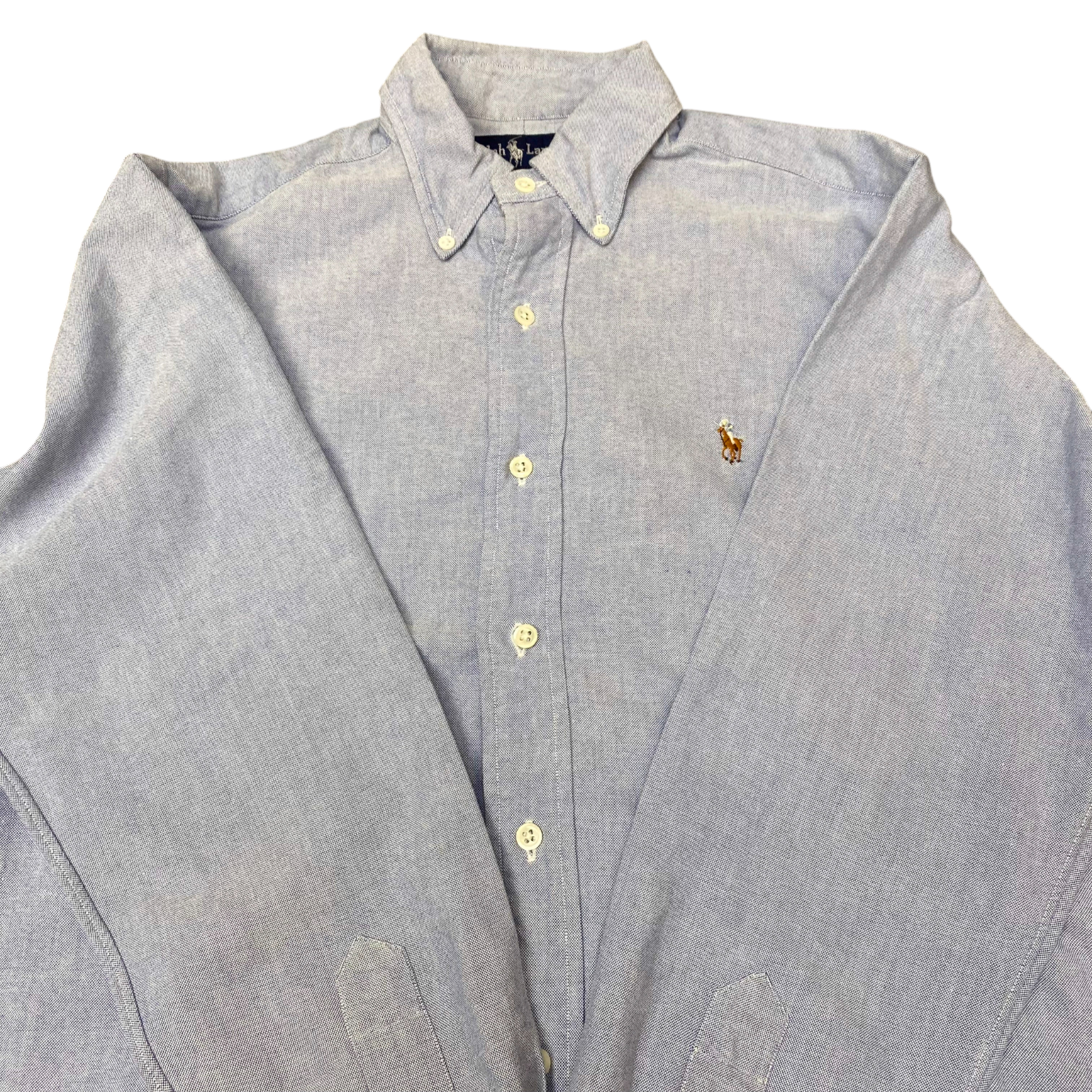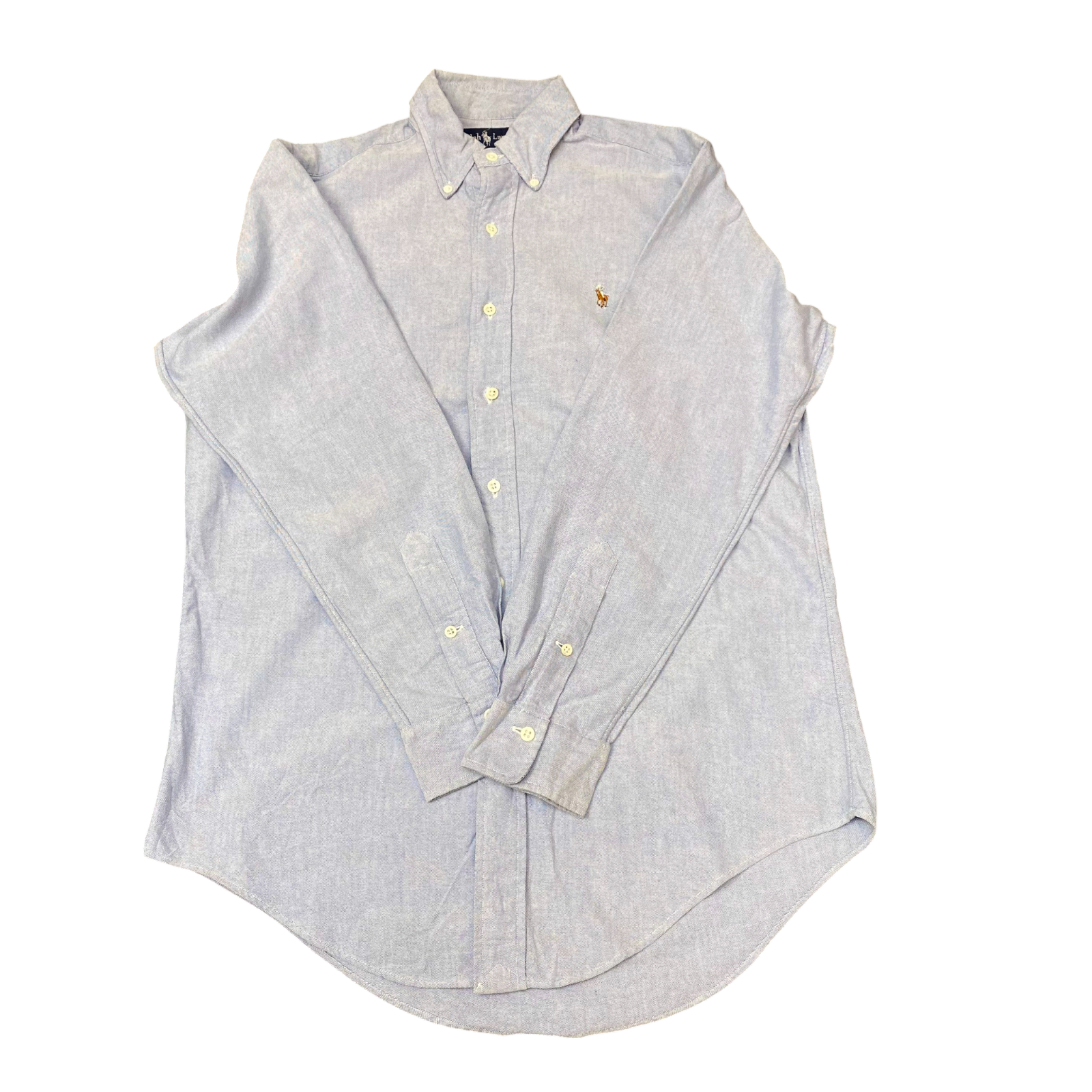 Ralph Lauren Formal Shirt Mens M Blue Long Sleeve Brown Pony Logo Button Down
