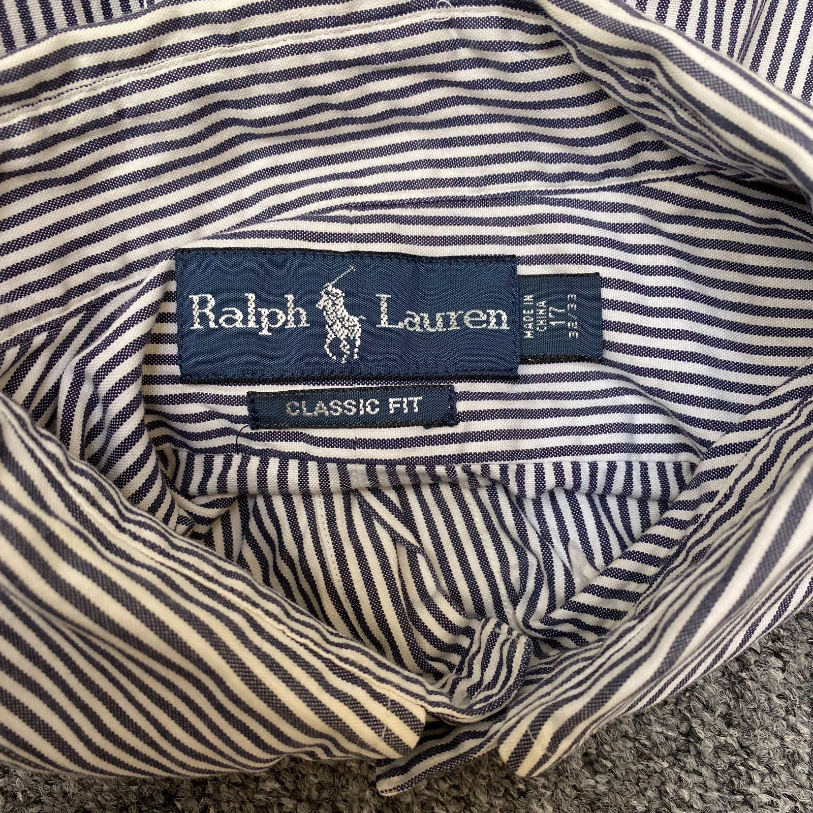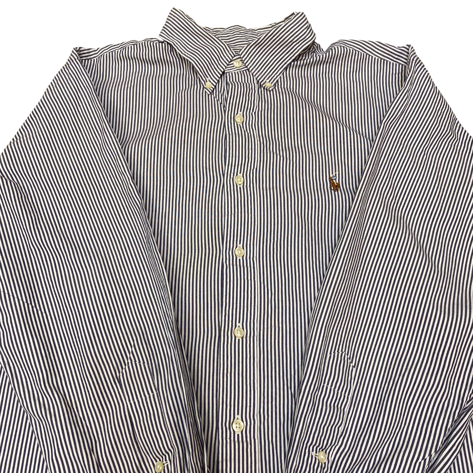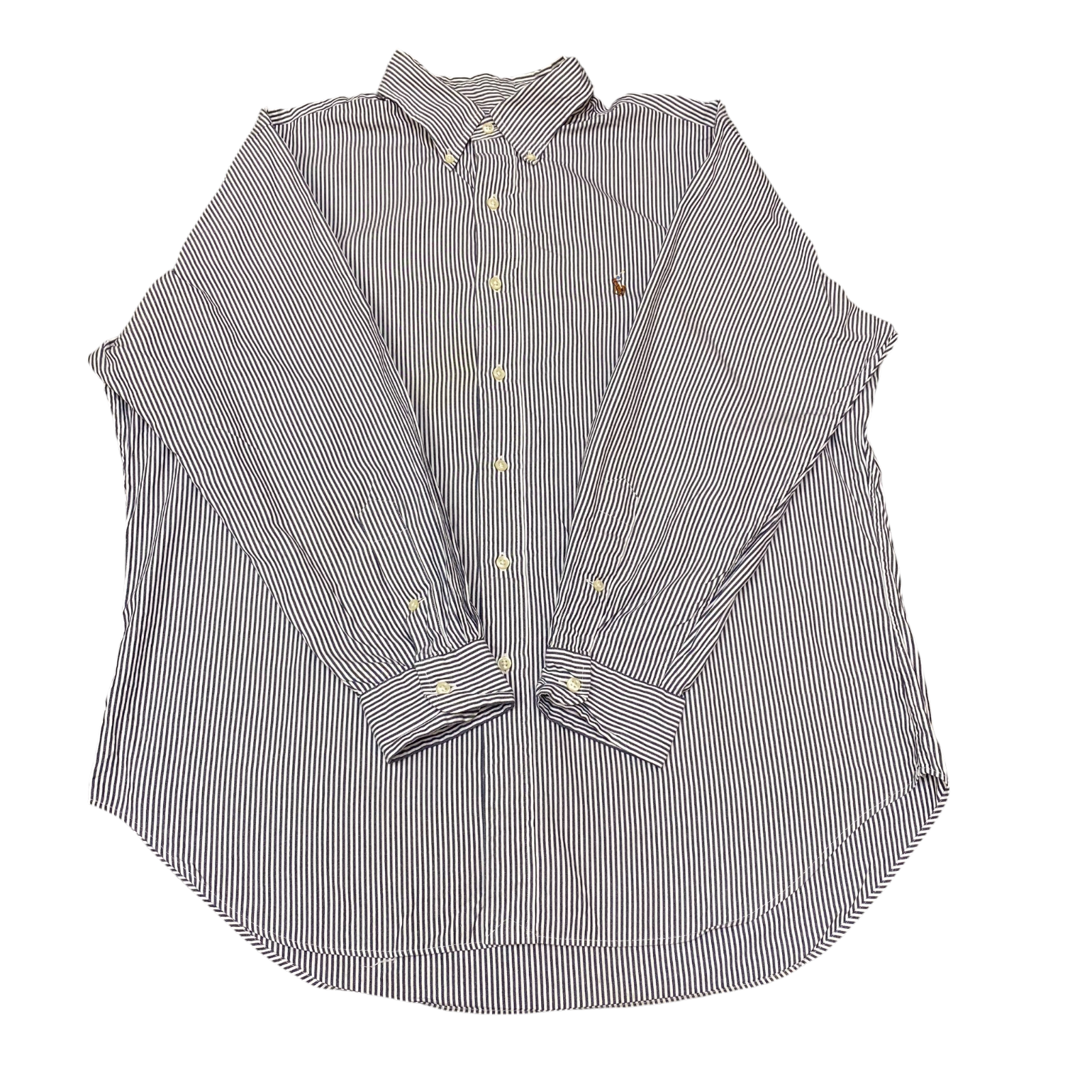 Ralph Lauren Formal Shirt Mens XL Blue Black Striped Classic Fit Button Down