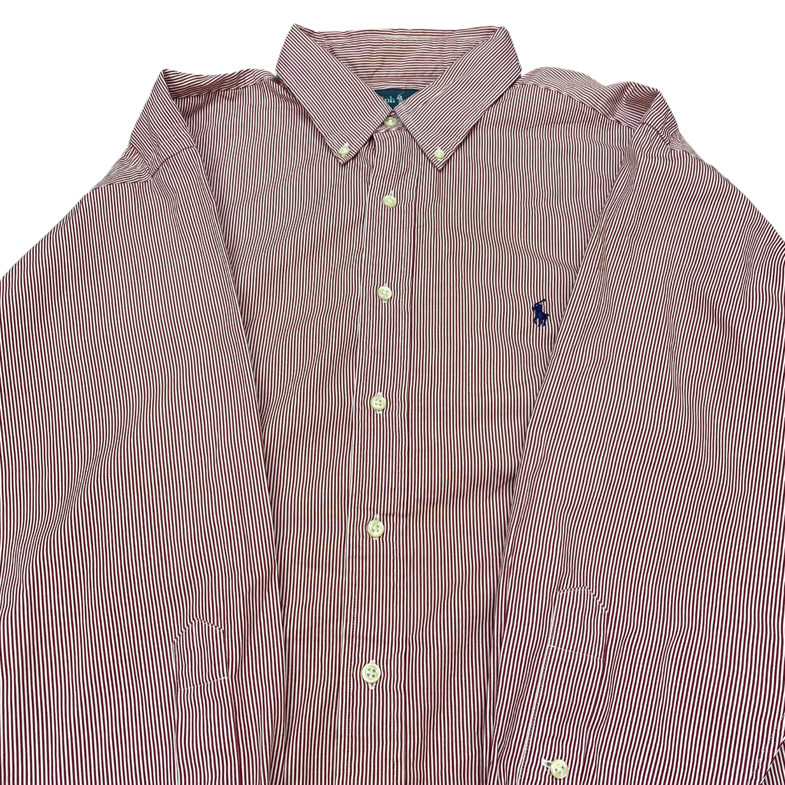 Ralph Lauren Formal Shirt Mens XL Red Striped Classic Fit Long Sleeve Button Up