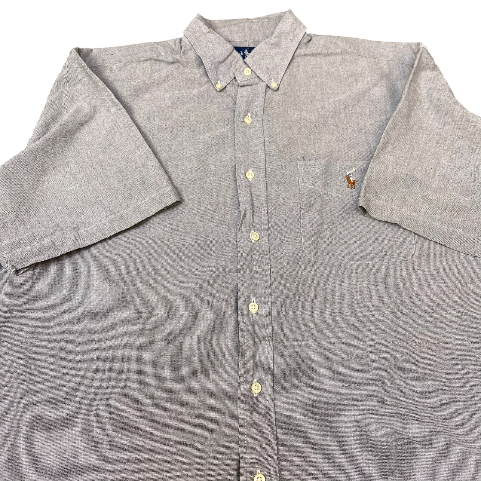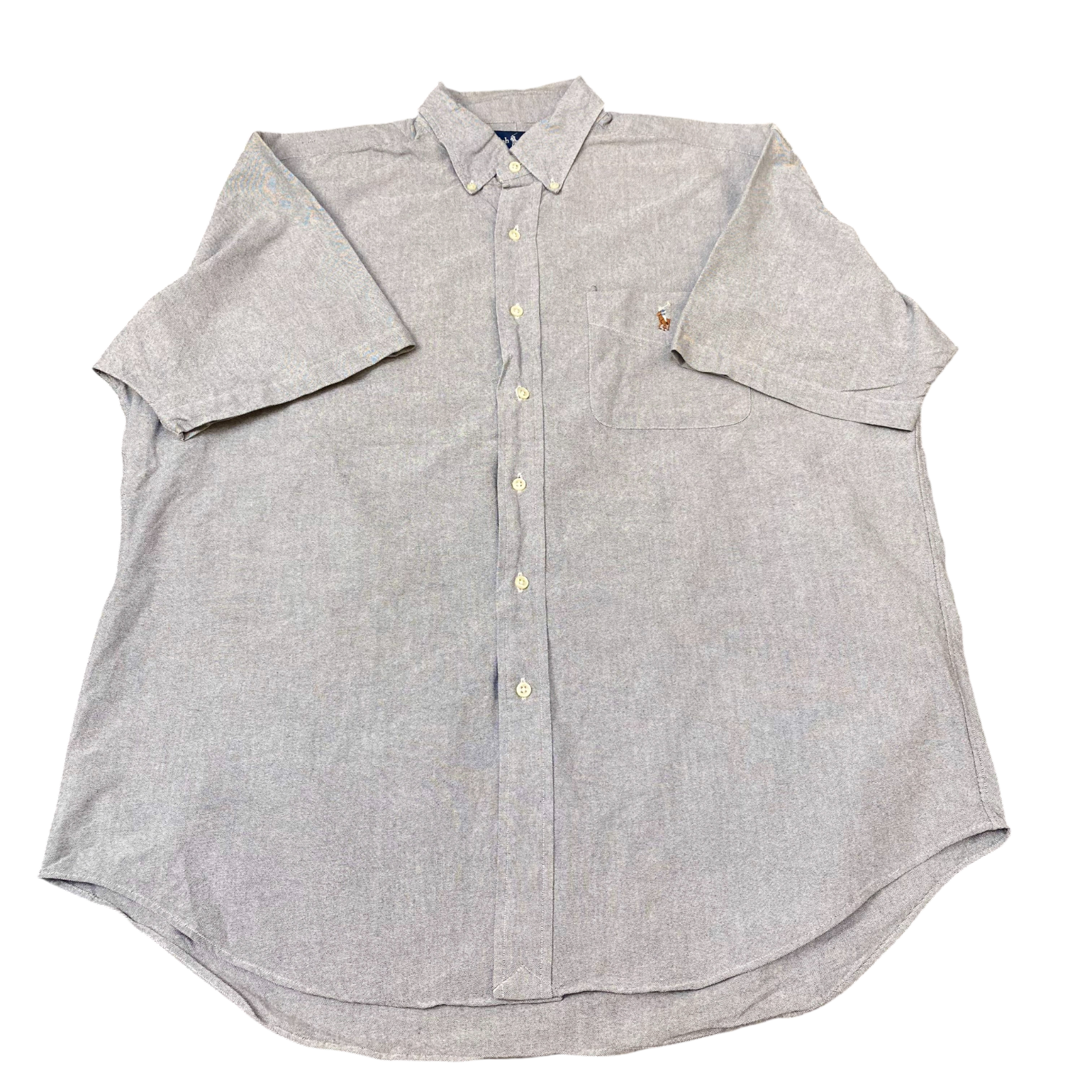 Ralph Lauren Shirt Mens L Blue Blake Short Sleeve Brown Pony Logo Button Down