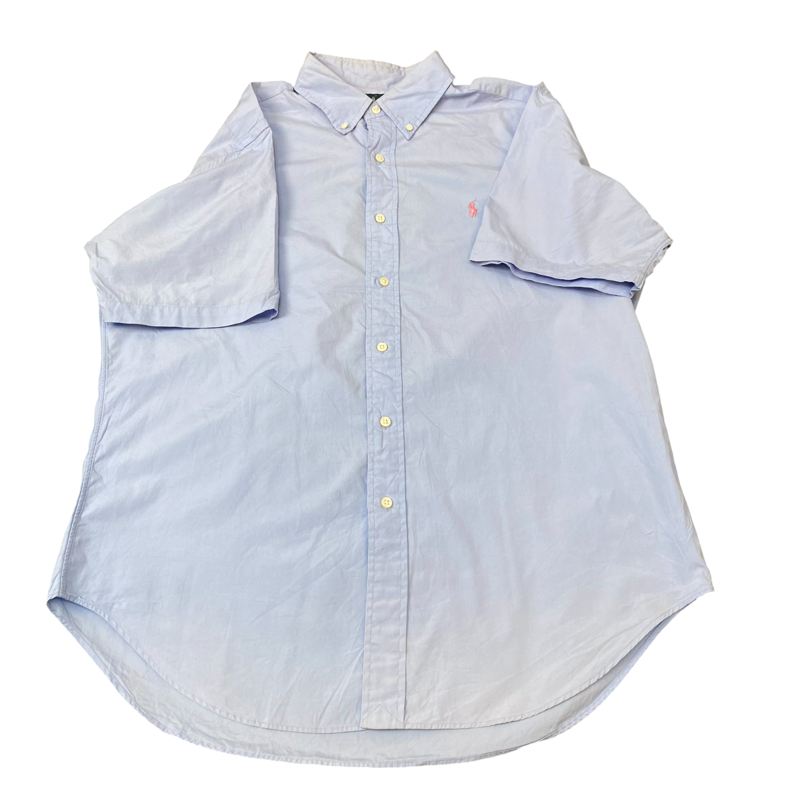 Ralph Lauren Shirt Mens L Blue Classic Fit Short Sleeve Brown Pony Button Down