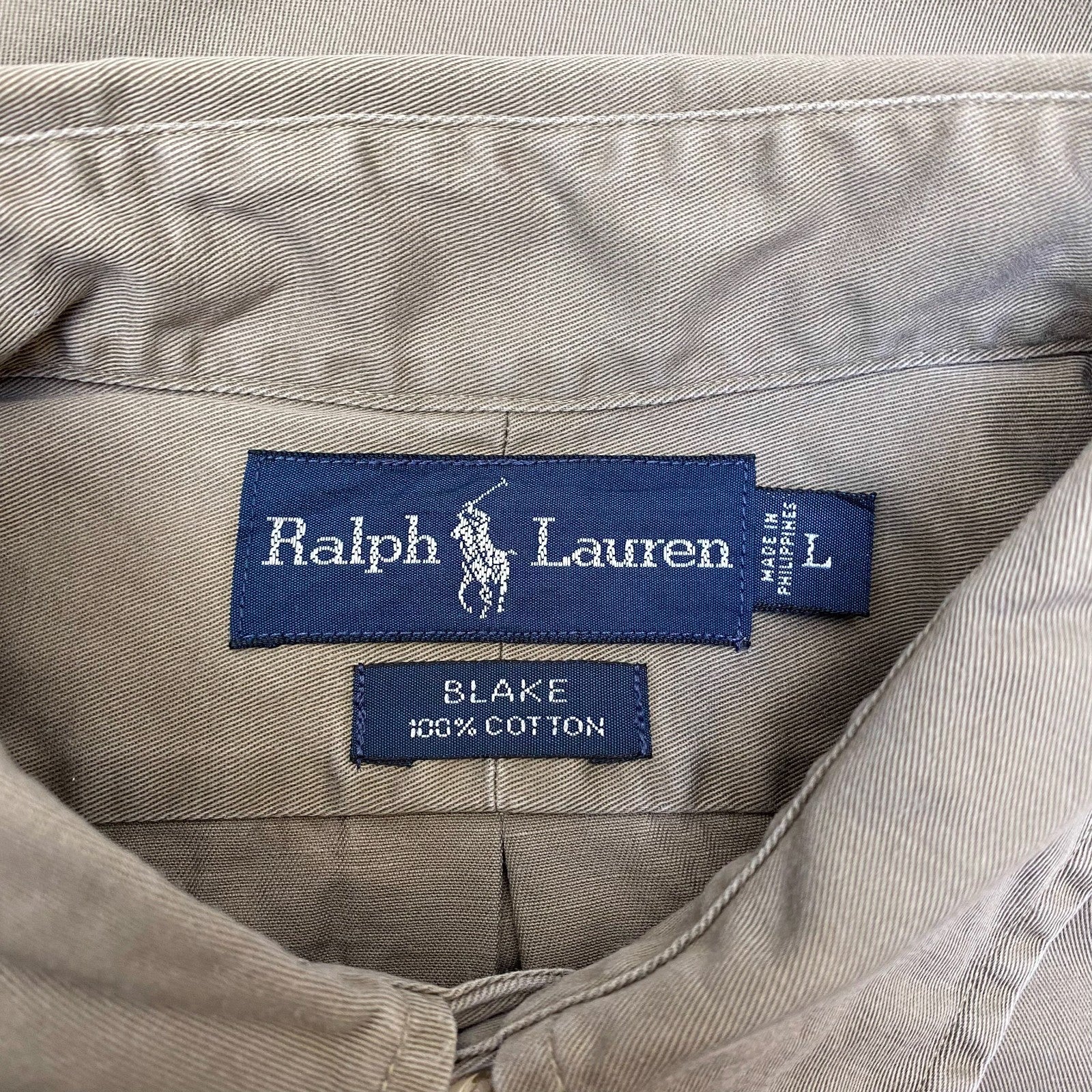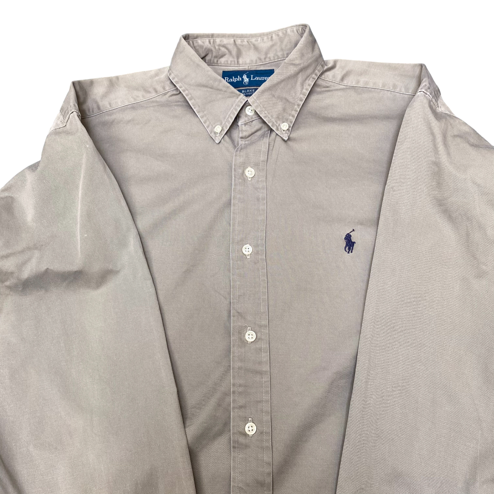 Ralph Lauren Shirt Mens L Grey Blake Long Sleeve Blue Pony Logo Button Down